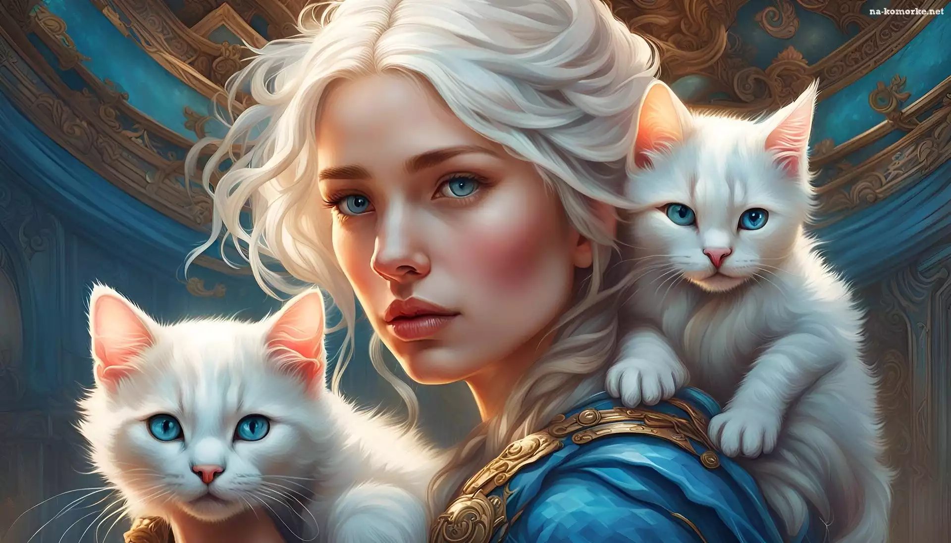 Koty, Kobieta, Białe, Grafika, Dwa, Warkocz na Komórkę