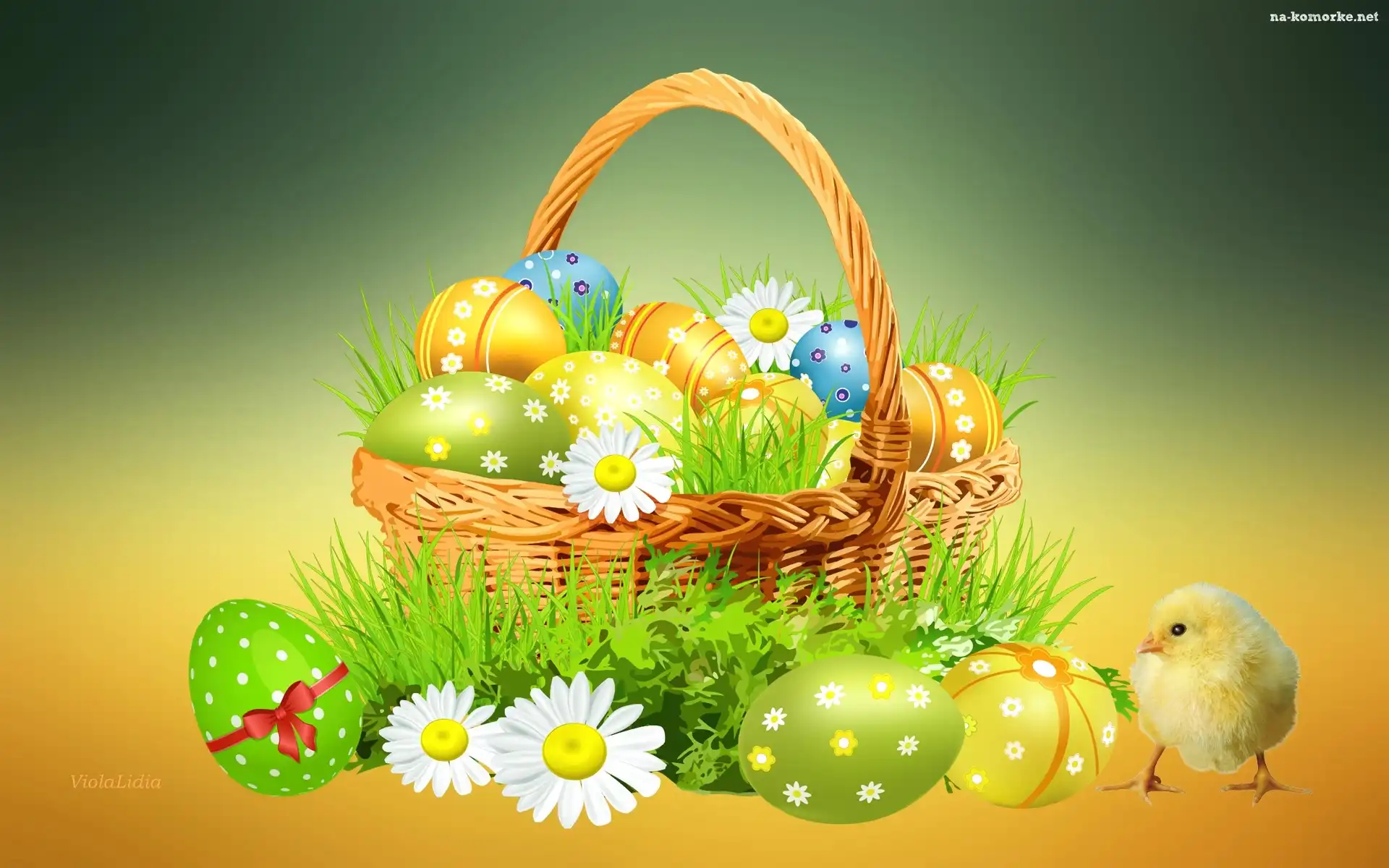 Grafika, Pisanki, Wielkanoc, Koszyczek na Komórkę