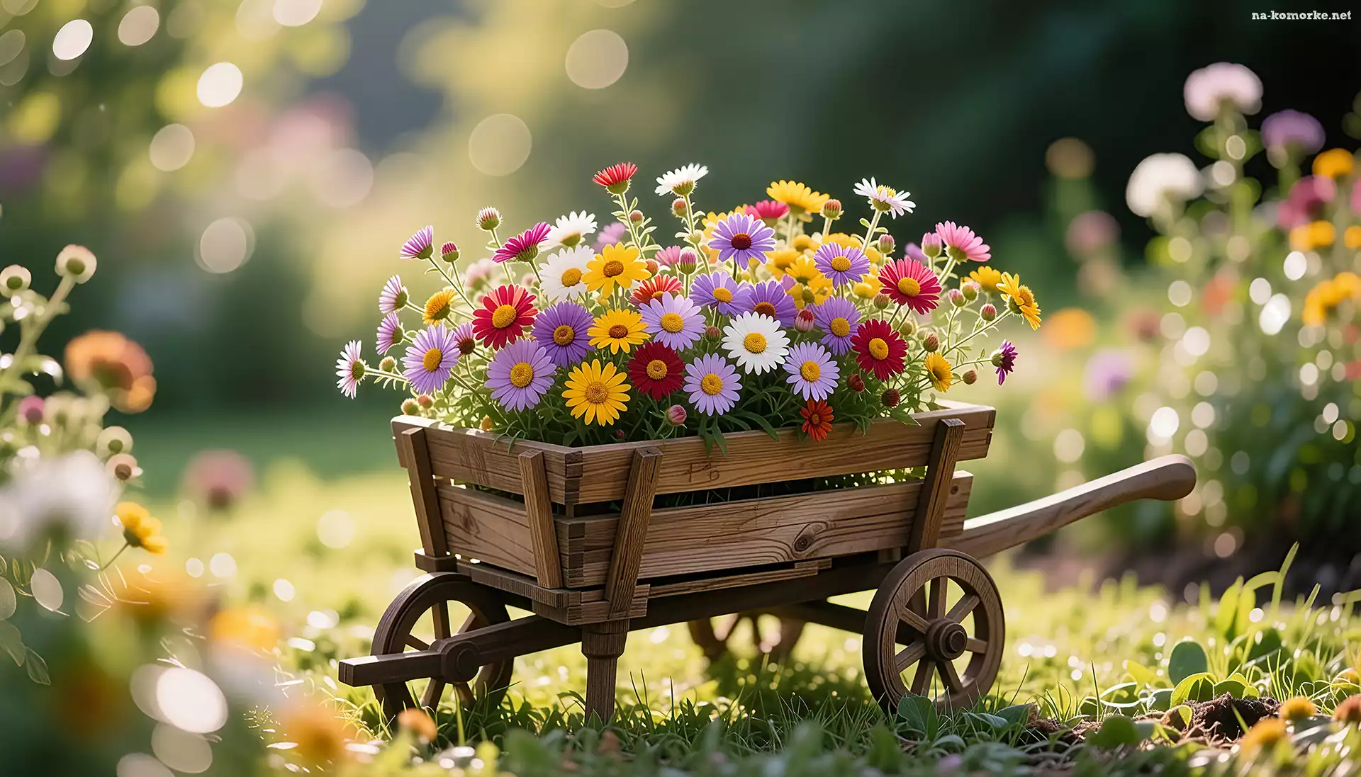 Ogród, Kolorowe, Wózek, Grafika AI, Drewniany, Kwiaty na Komórkę
