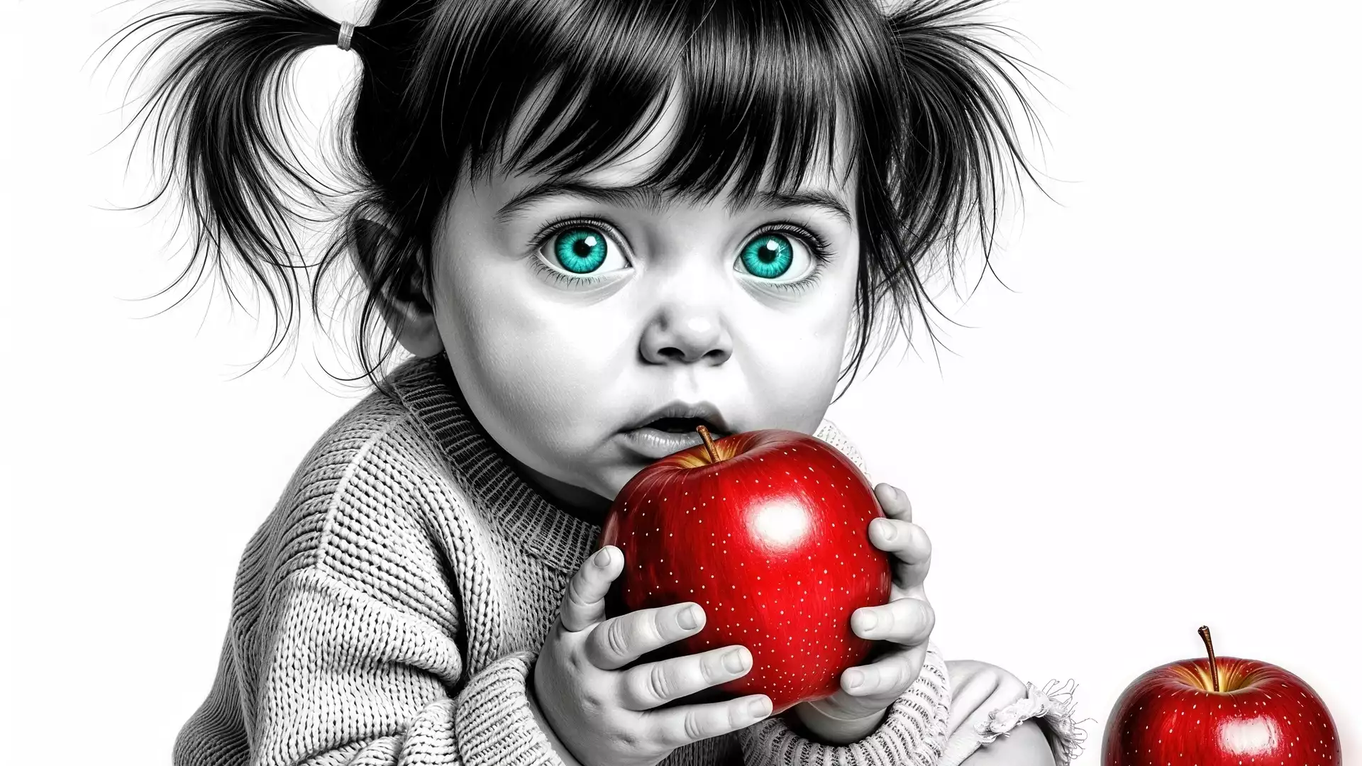 Jabłka, Dziewczynka, Czerwone, Grafika, Oczy, Zielone na Komórkę