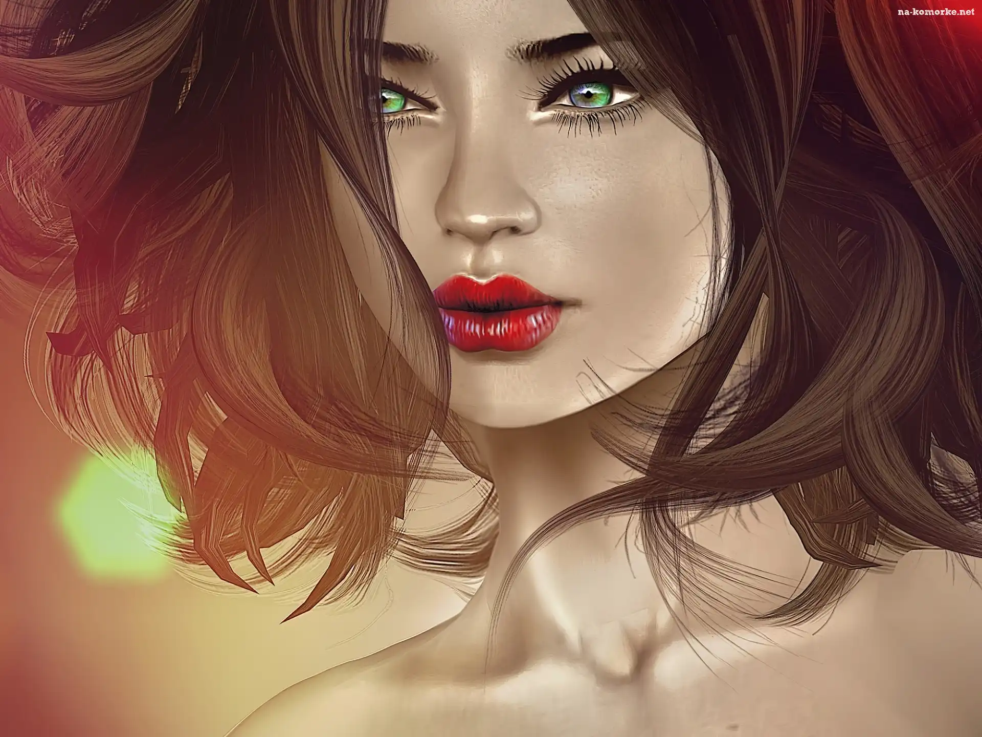 Grafika, Piękna, Twarz, Zielone, Oczy na Komórkę