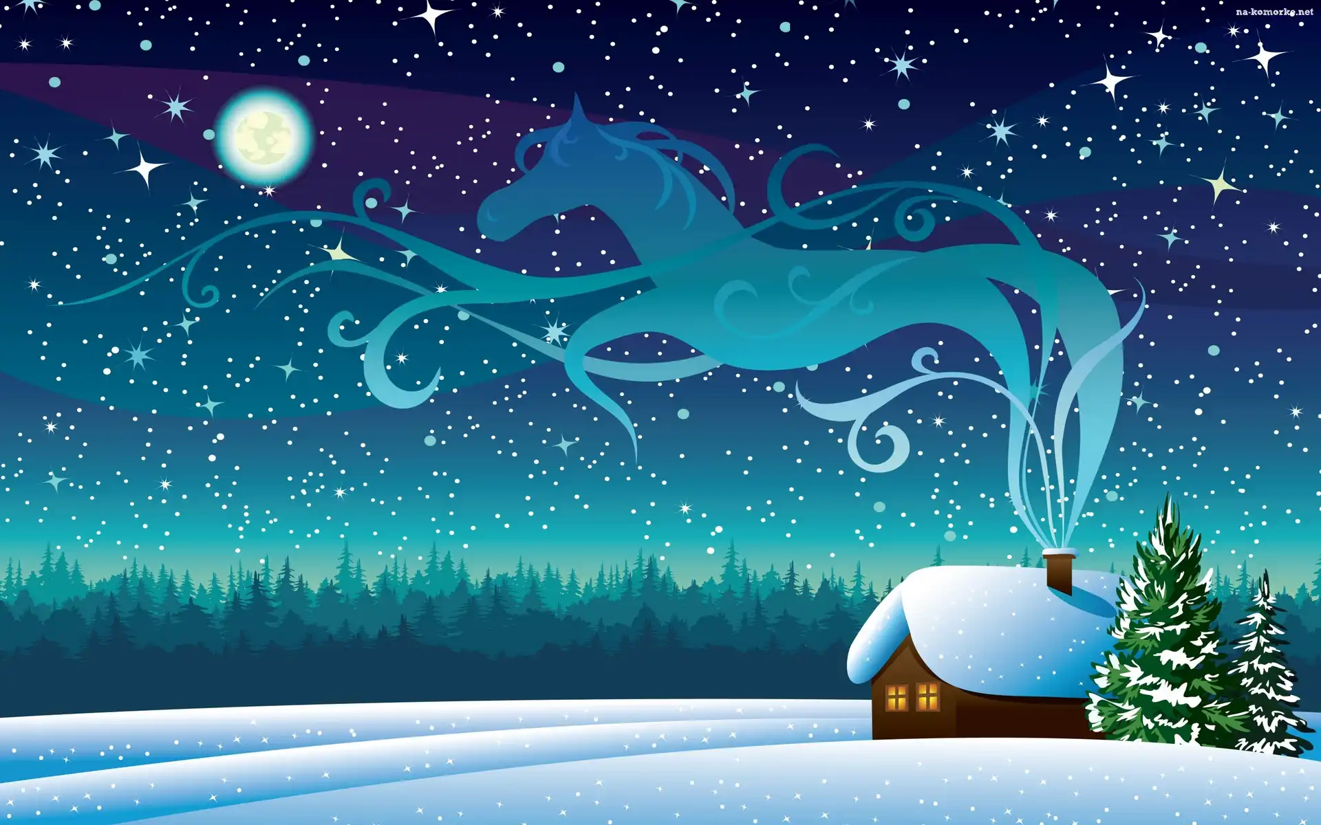 Grafika, Gwiazdy, Zima, Las na Komórkę