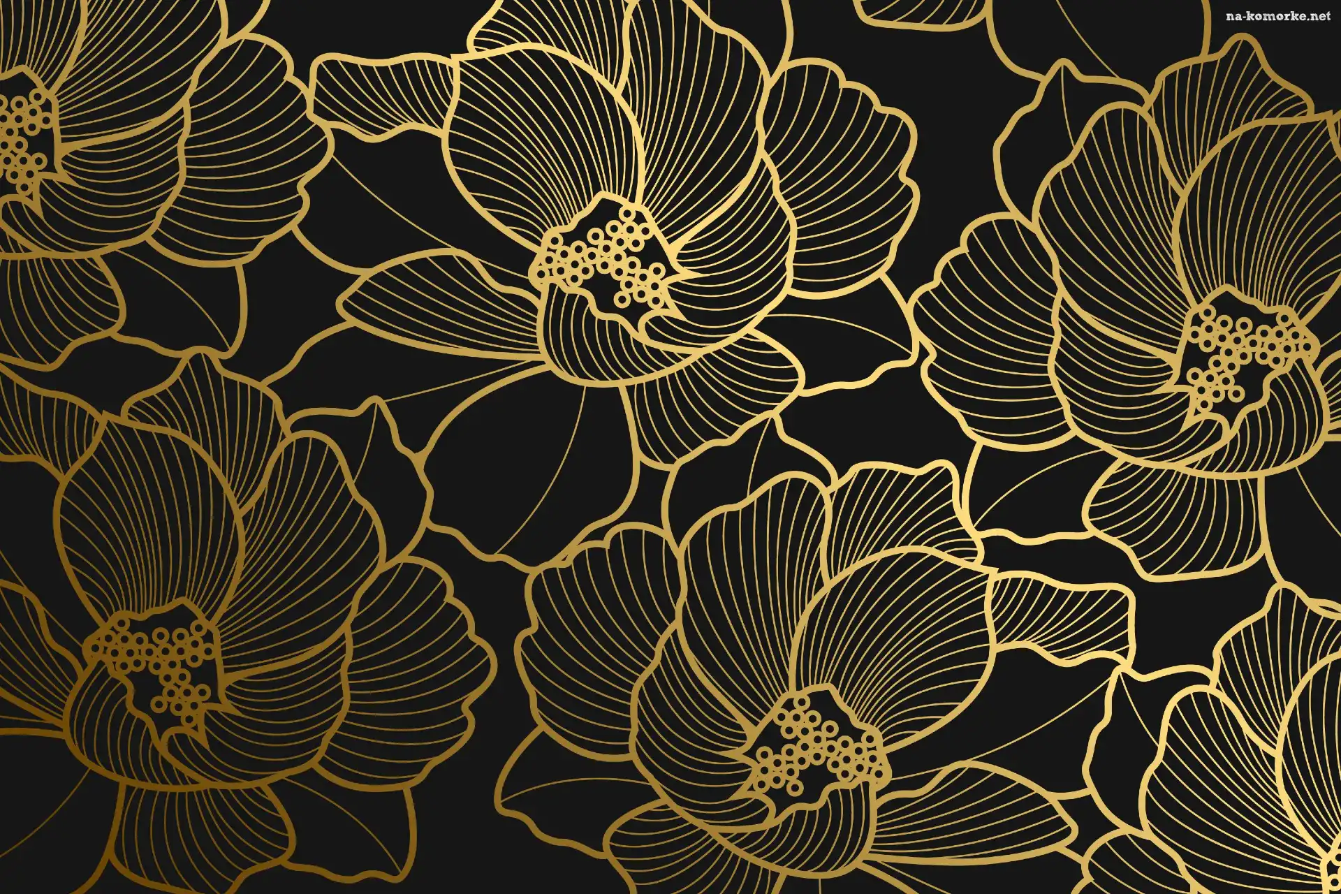 Grafika 2D, Złote, Kwiaty na Komórkę