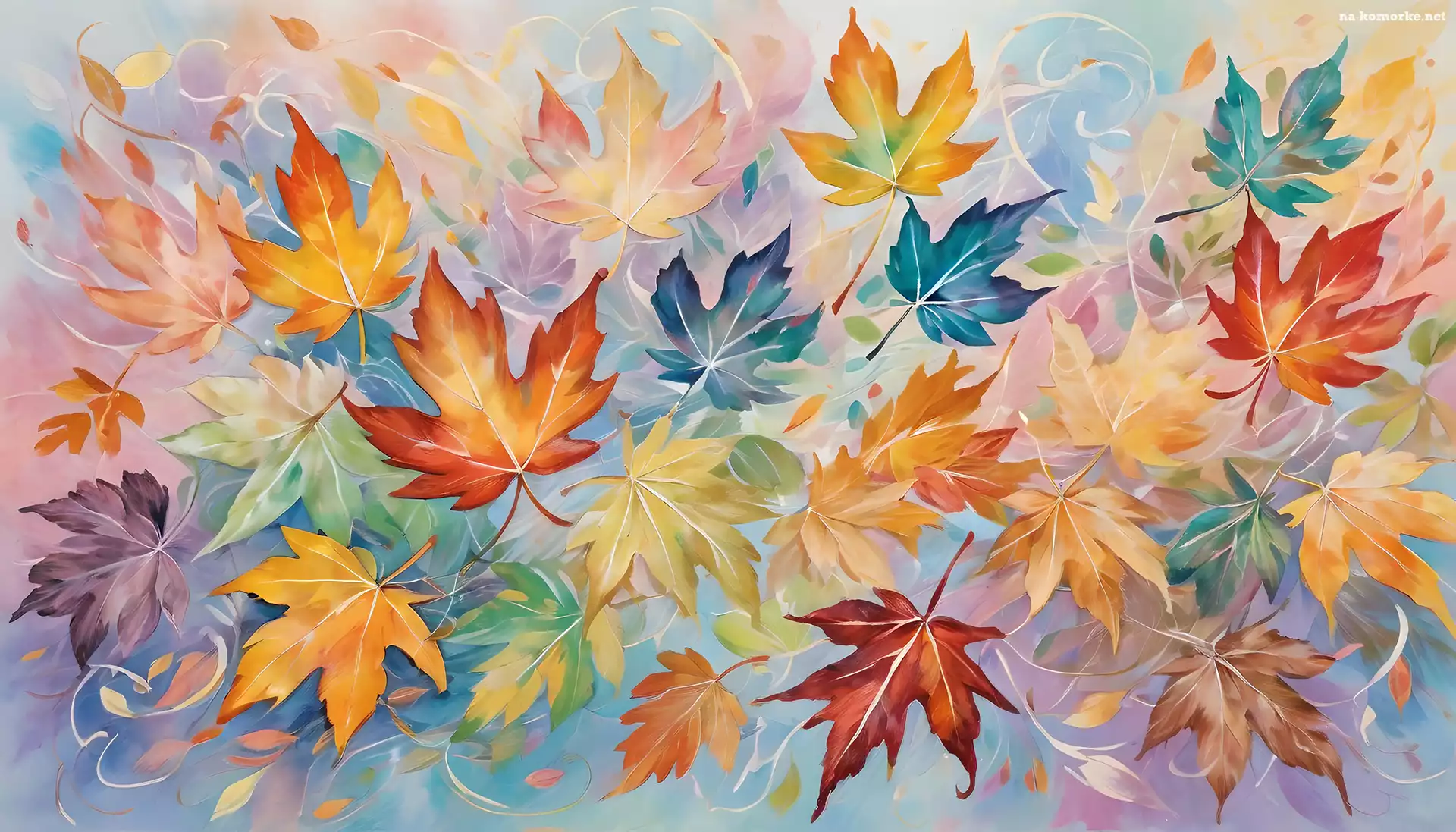 Liście, Kolorowe, Niebieskie, Grafika, Brązowe, Żółte na Komórkę