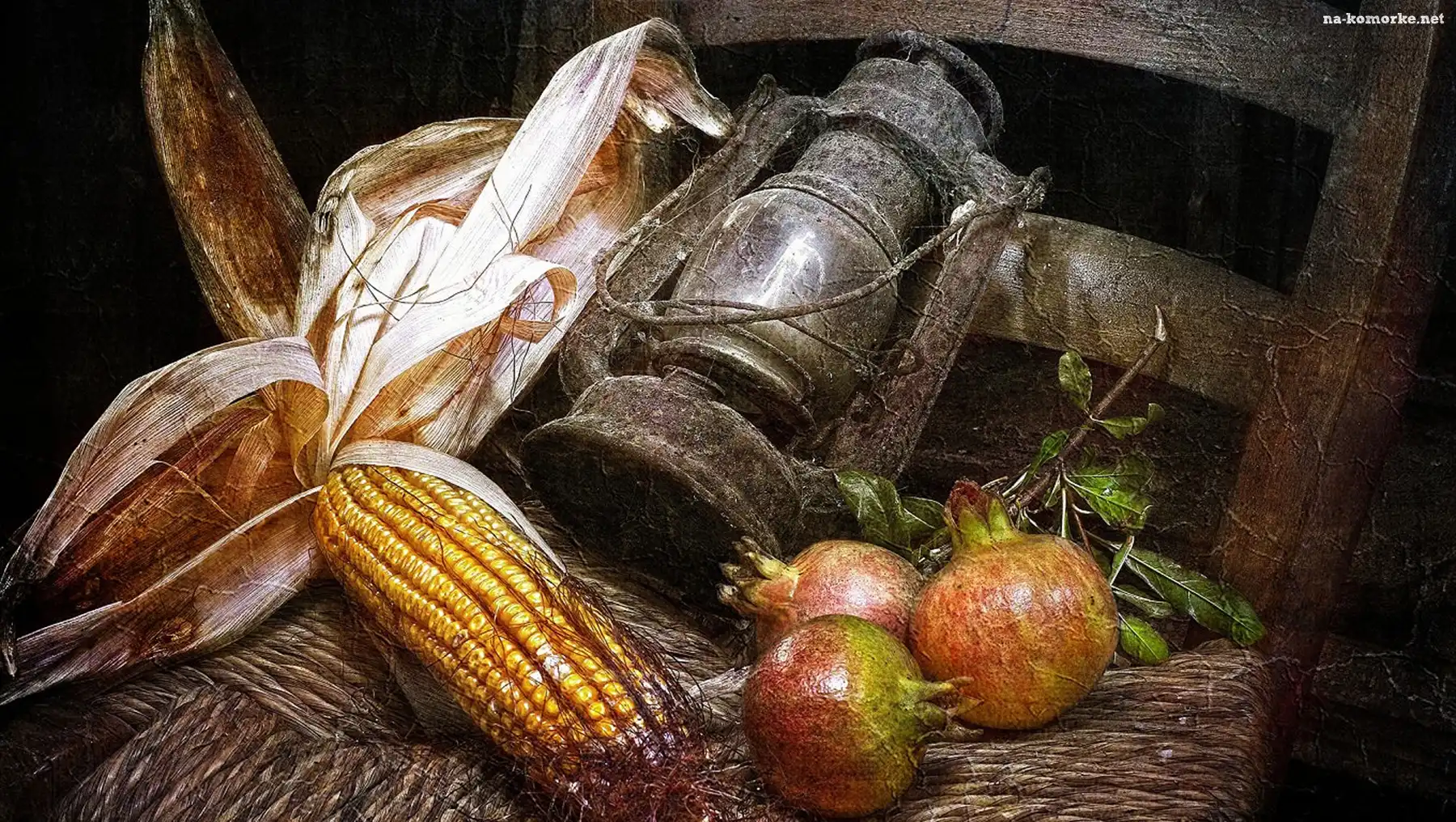 Granaty, Krzesło, Stara, Lampa, Kukurydza na Komórkę