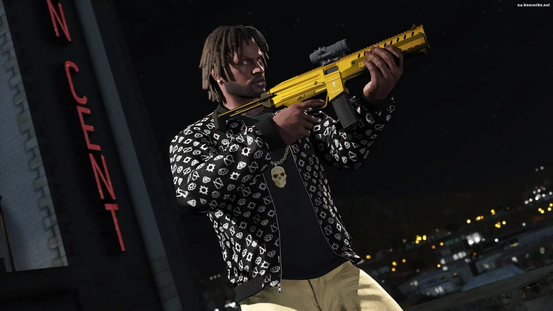 Pistolet maszynowy Combat PDW, Gra, Grand Theft Auto V, GTA 5, Mężczyzna na Komórkę