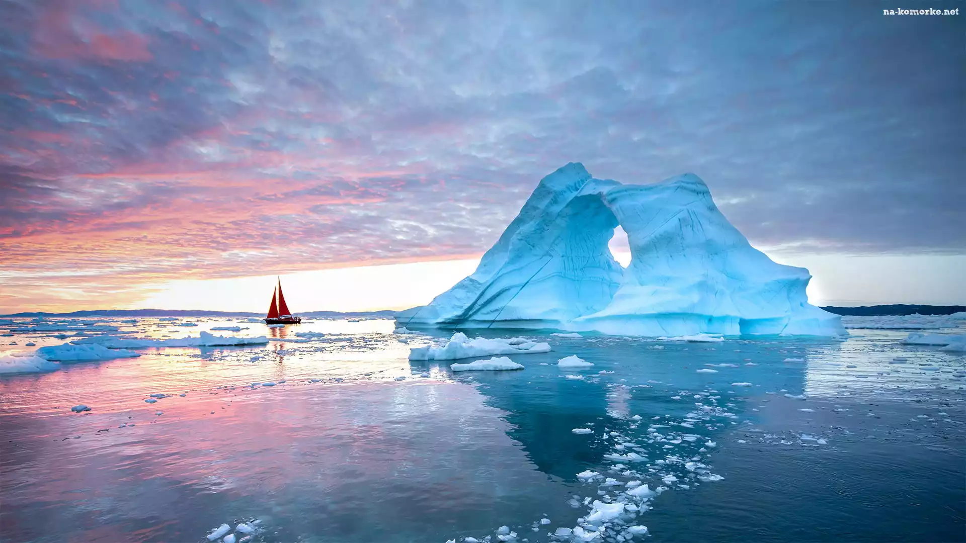 Góra lodowa, Grenlandia, Zatoka, Dania, Żaglówka, Disko Bay, Wschód słońca, Ilulissat na Komórkę
