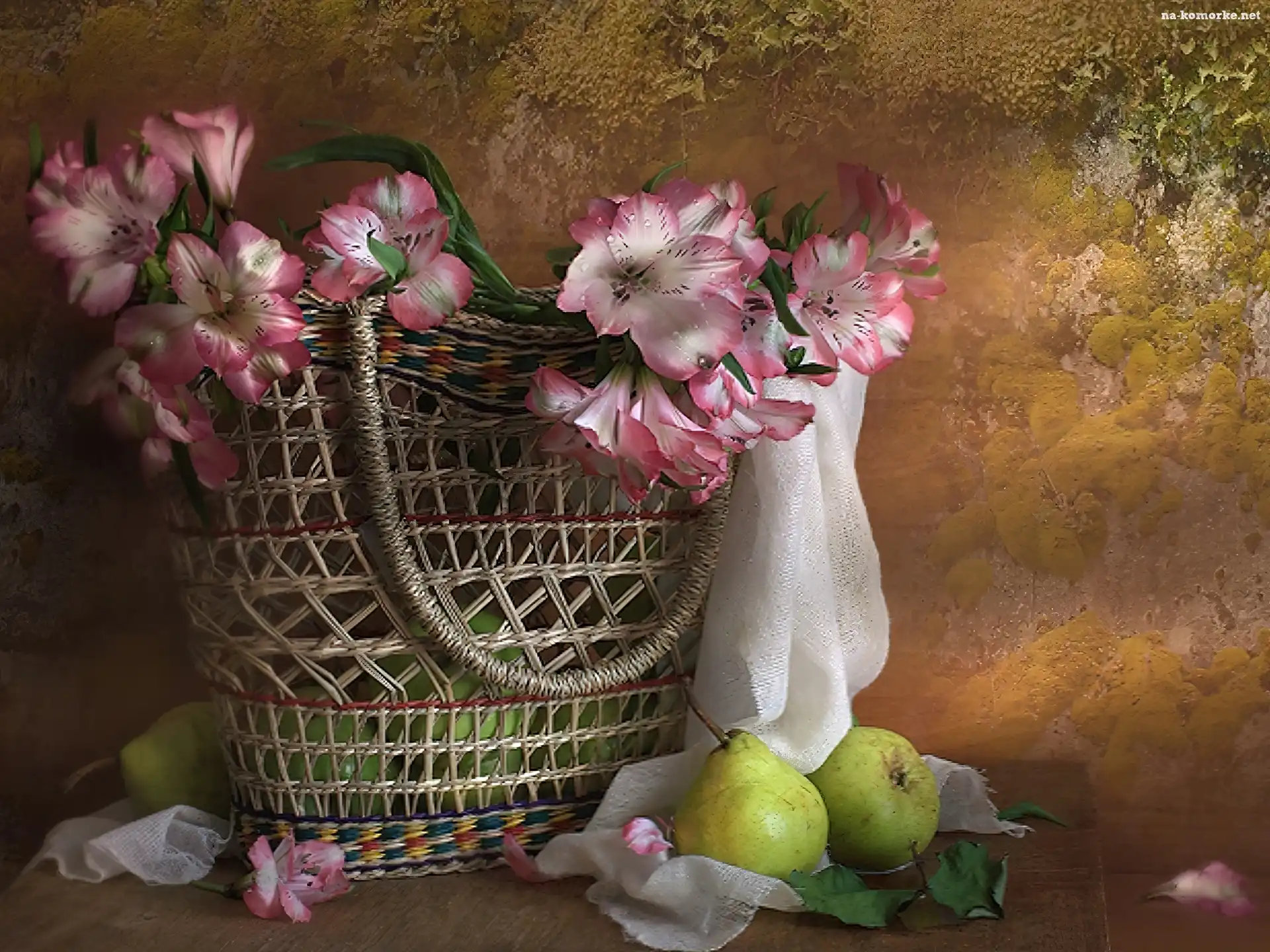 Gruszki, Bukiet, Różowych, Kwiatów, Kosz na Komórkę