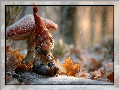 Skrzat, Szron, Liście, Grzyb, Grafika AI na Komórkę