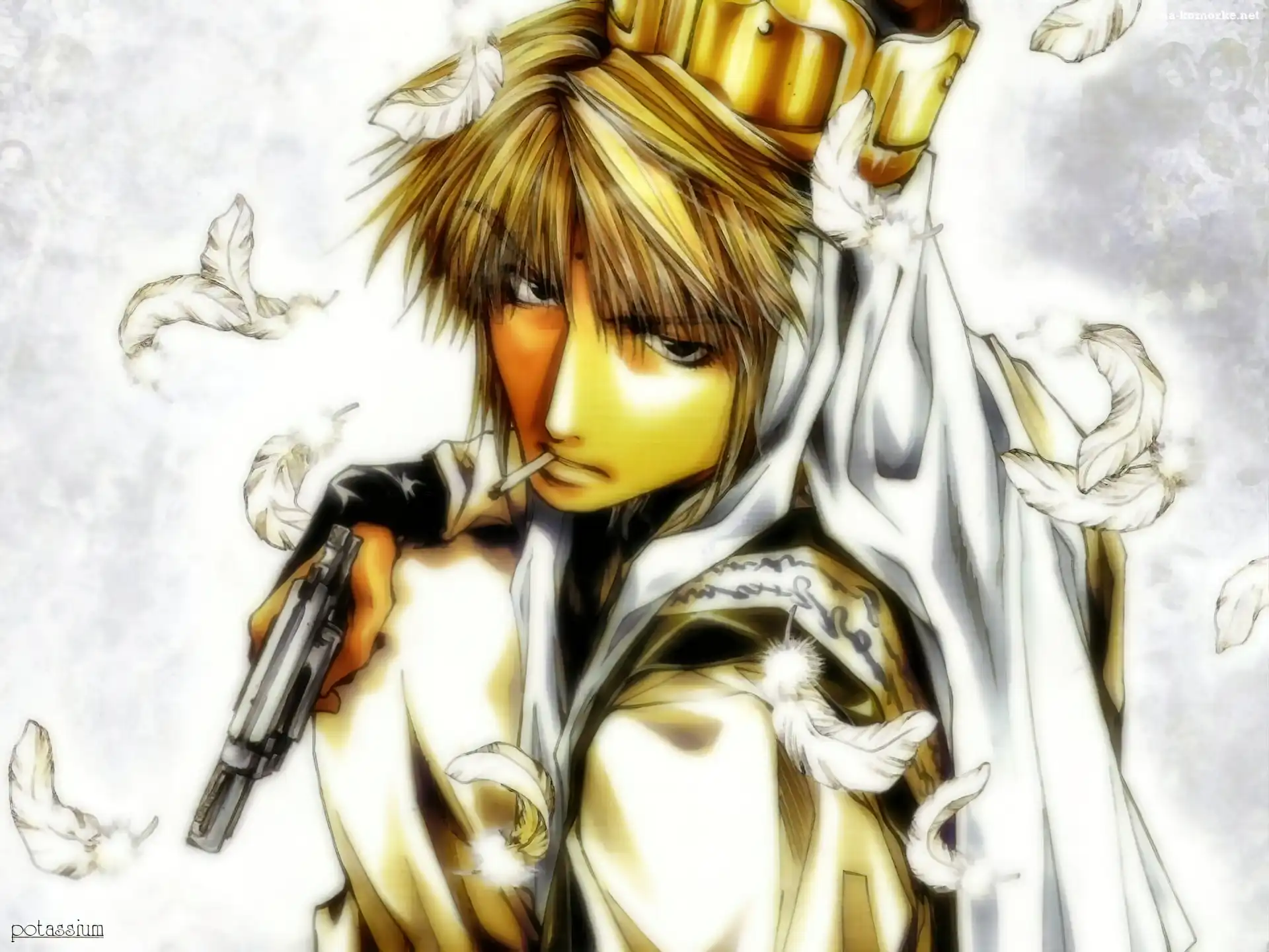 Saiyuki, postacie Saiyuki, ekipa Saiyuki, one drop Saiyuki, ciastko, pizza Saiyuki, czerwone, skrzydła Saiyuki, boy, ludzie, młody facet, Saiyuki, liść, człowiek, zasieki Saiyuki, chłopak, postać Saiyuki, odcisk ręki Saiyuki, ptaki, facet Saiyuki, bose nogi Saiyuki, sha gojyo Saiyuki, czarne, lańcuchy Saiyuki, w płaszczach, kremowe