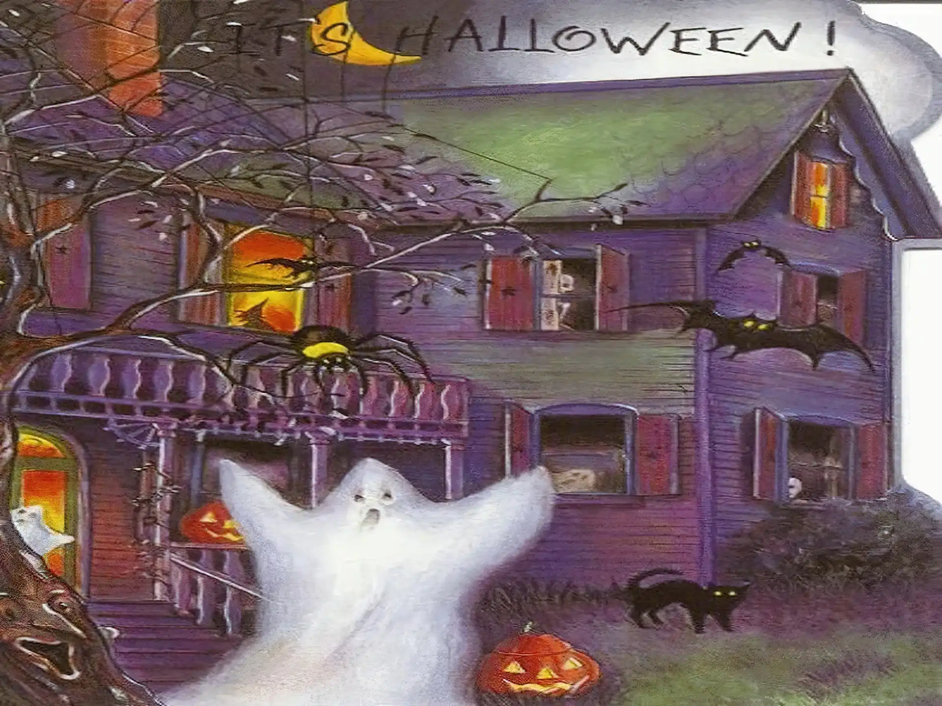 Halloween, dynia Halloween, straszny człowiek Halloween, kotek Halloween, twarz w dyni Halloween, stworki Halloween, zabójca, czaszka Halloween, maska Halloween, duchy Halloween, Twe ety Halloween, Kubuś Puchatek Halloween, przebrań cy Dynie, Halloween Halloween, dynia Halloween, dom, drzewa
