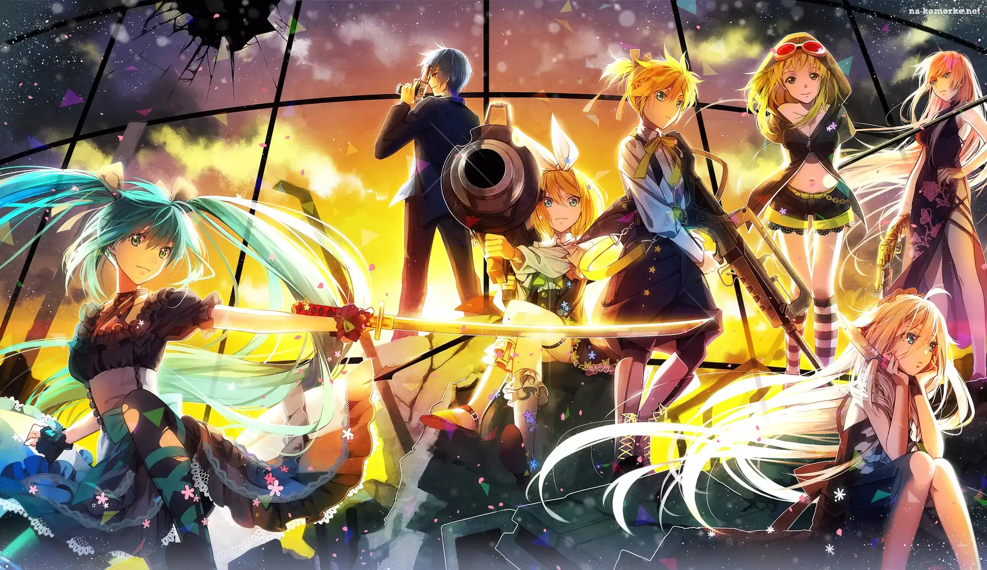 Vocaloid, Megurine Luka, Kaito, IA, Hatsune Miku, Kagamine Rin, Kagamine Len, Gumi na Komórkę