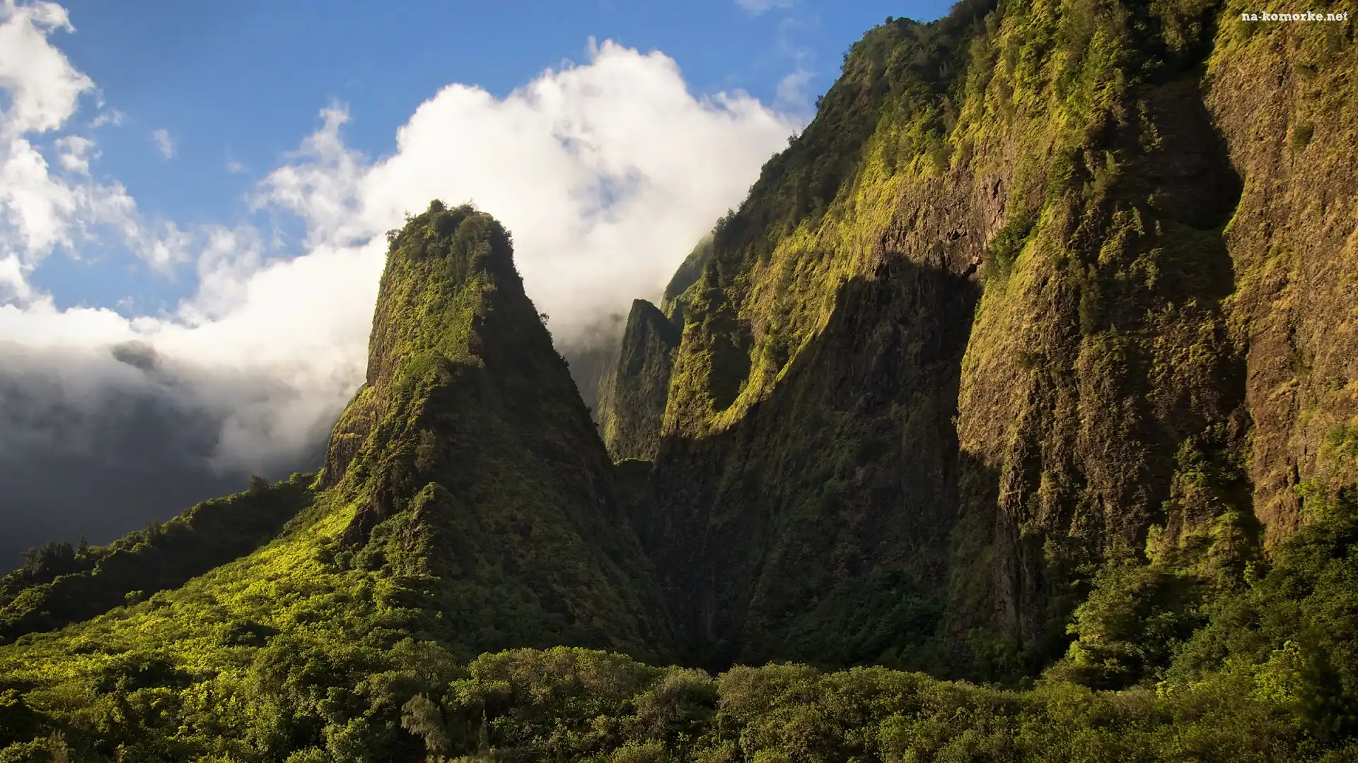 Chmury, Hawaje, Góry, Szczyt Igła Iao, Roślinność na Komórkę