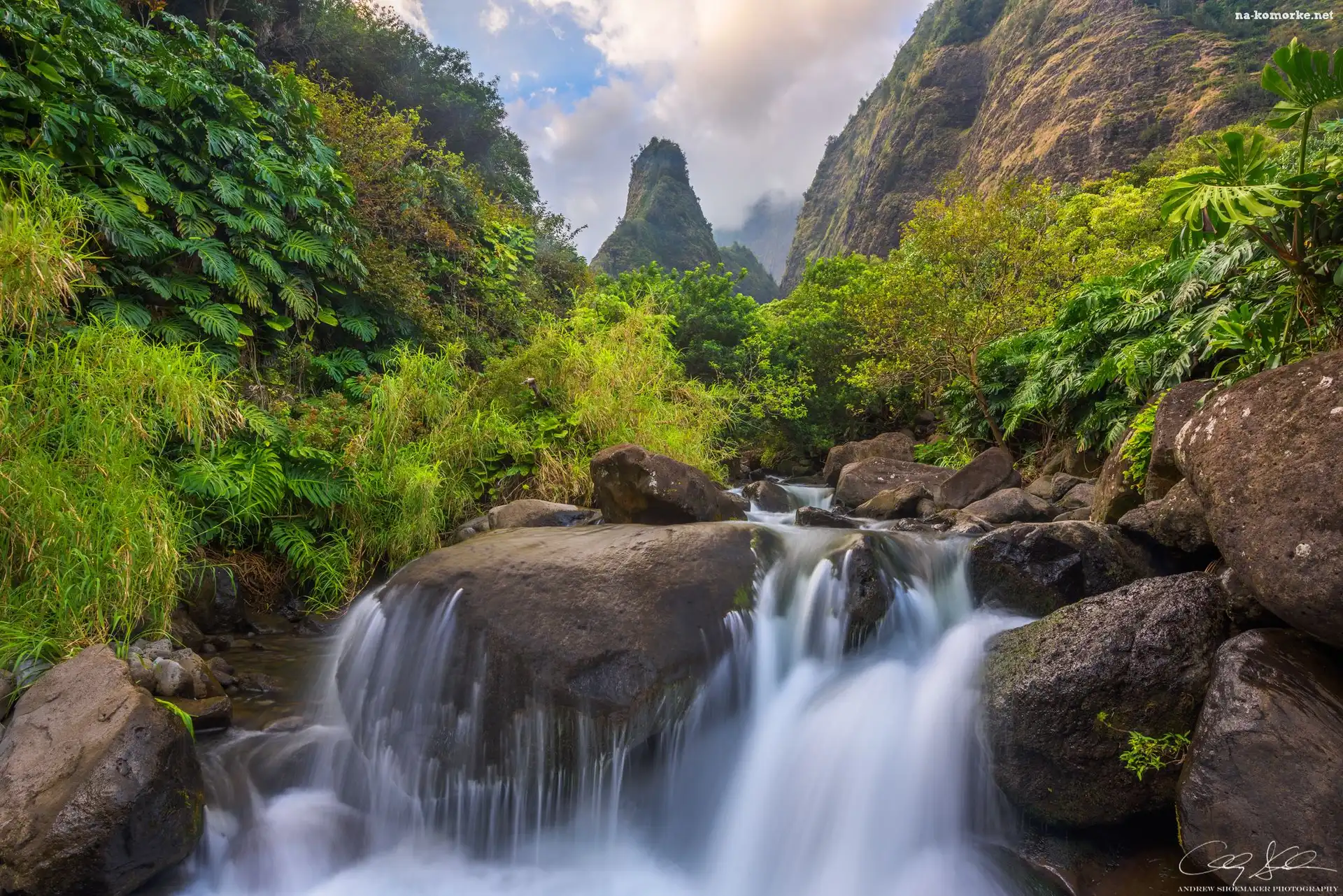 Roślinność, Hawaje, Wyspa Maui, Potok Iao Valley, Skały na Komórkę