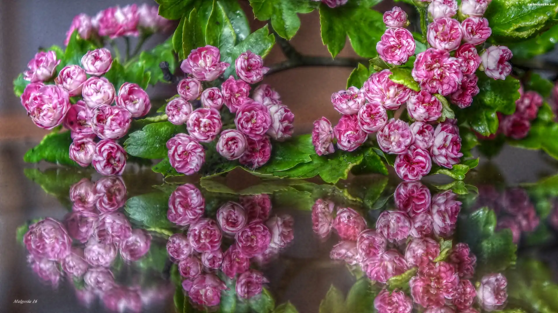 HDR, Różowe, Kwiaty, Głóg, Odbicie na Komórkę