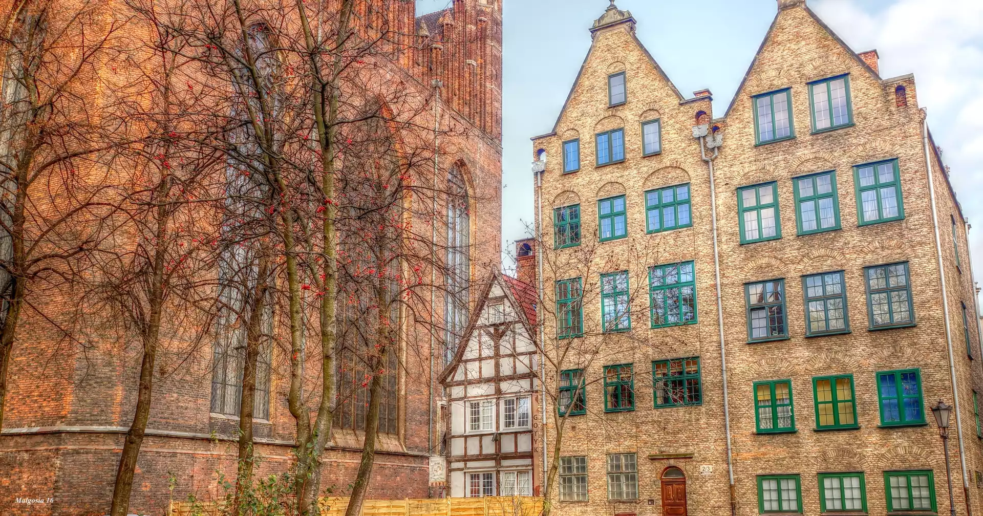 HDR, Gdańsk, Kościół, Kamieniczki, Drzewa na Komórkę