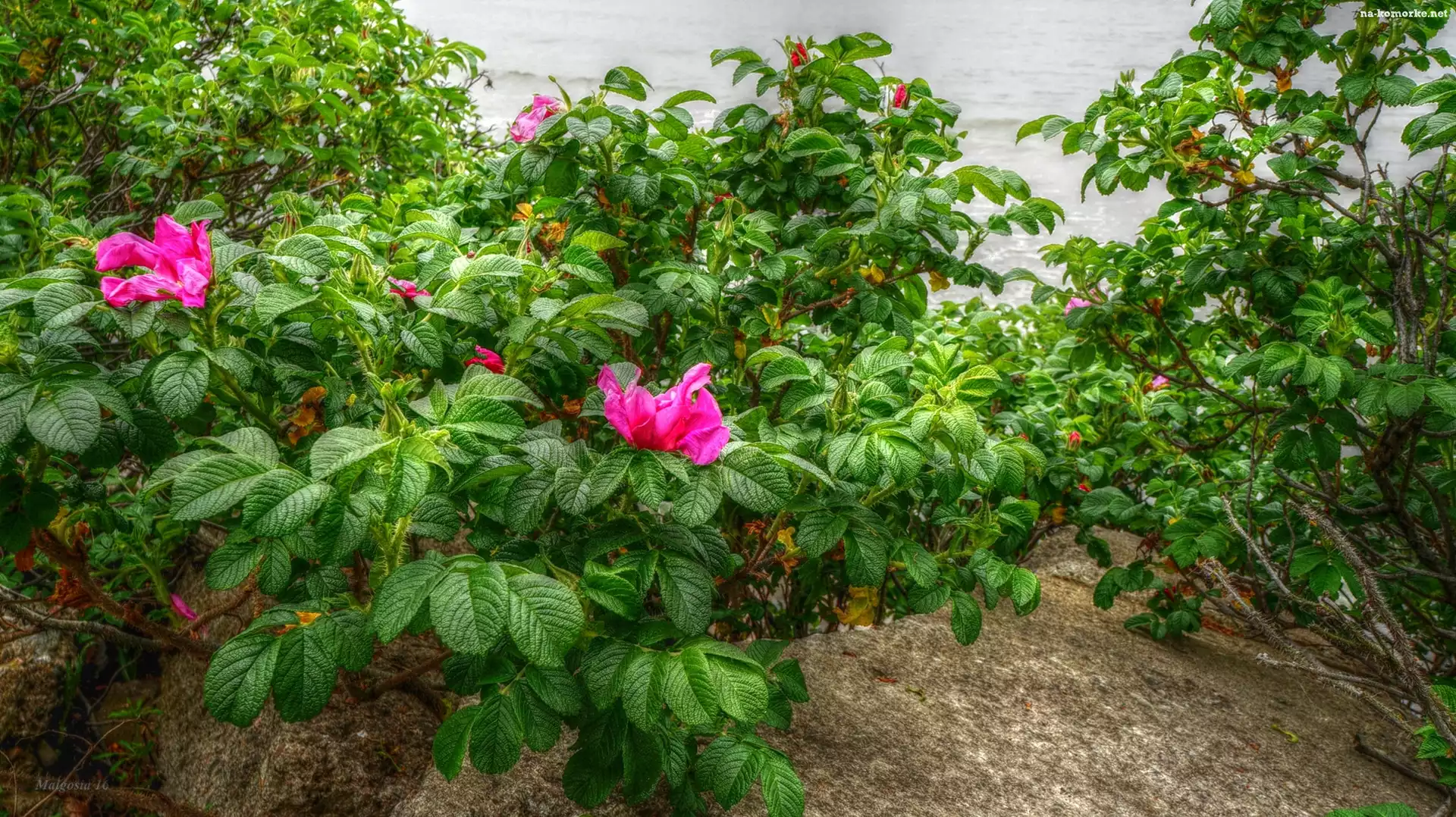 HDR, Rośliny, Zieleń, Dzika Róża, Kamień na Komórkę