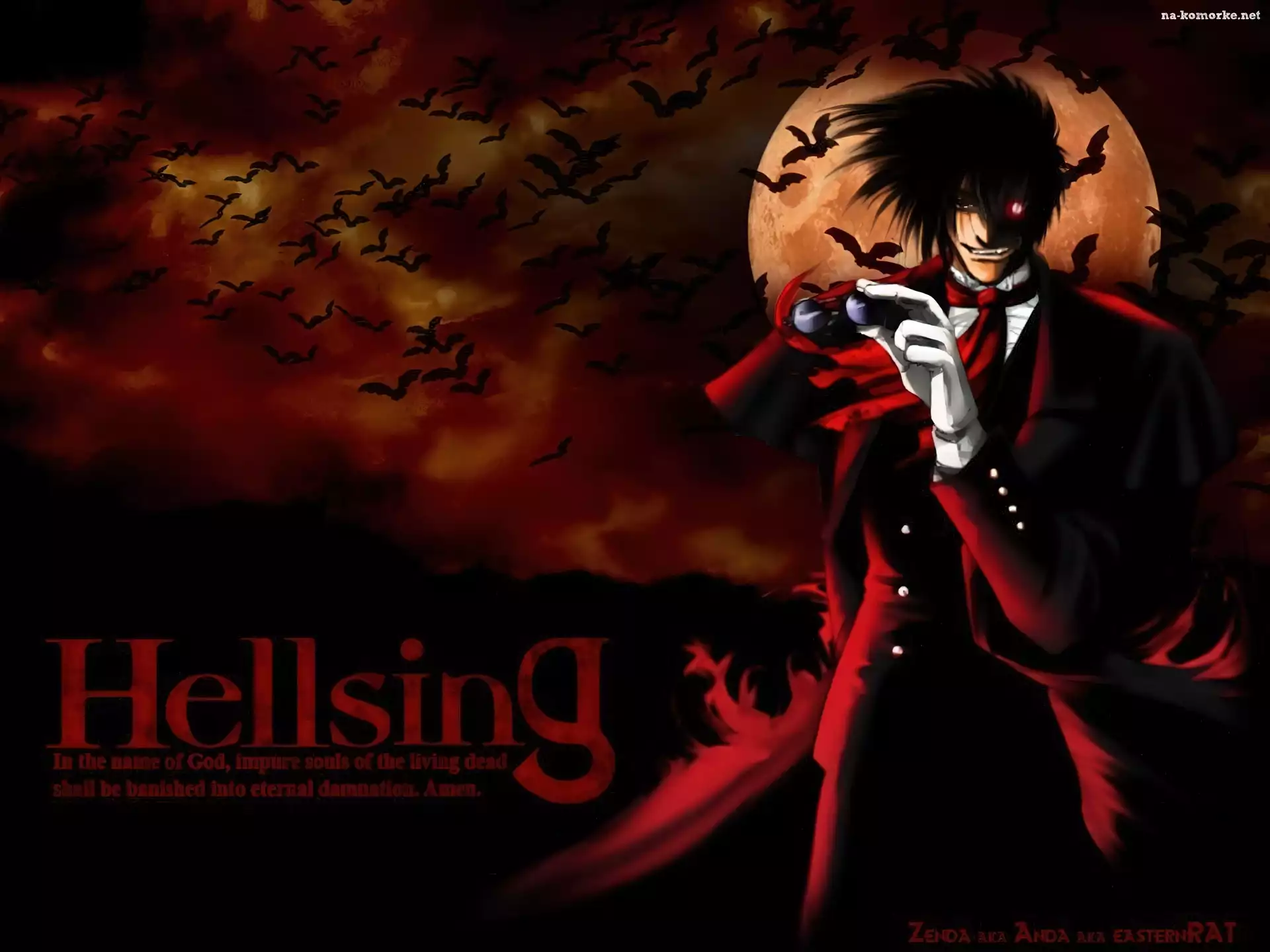 Hellsing, moon, nietoperze, człowiek na Komórkę