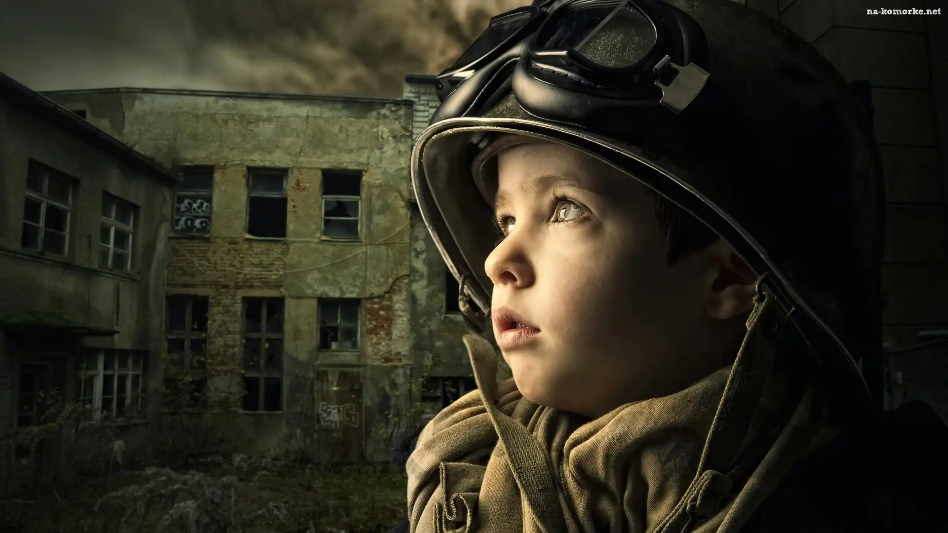 Dziecko, Hełm, Ruiny na Komórkę