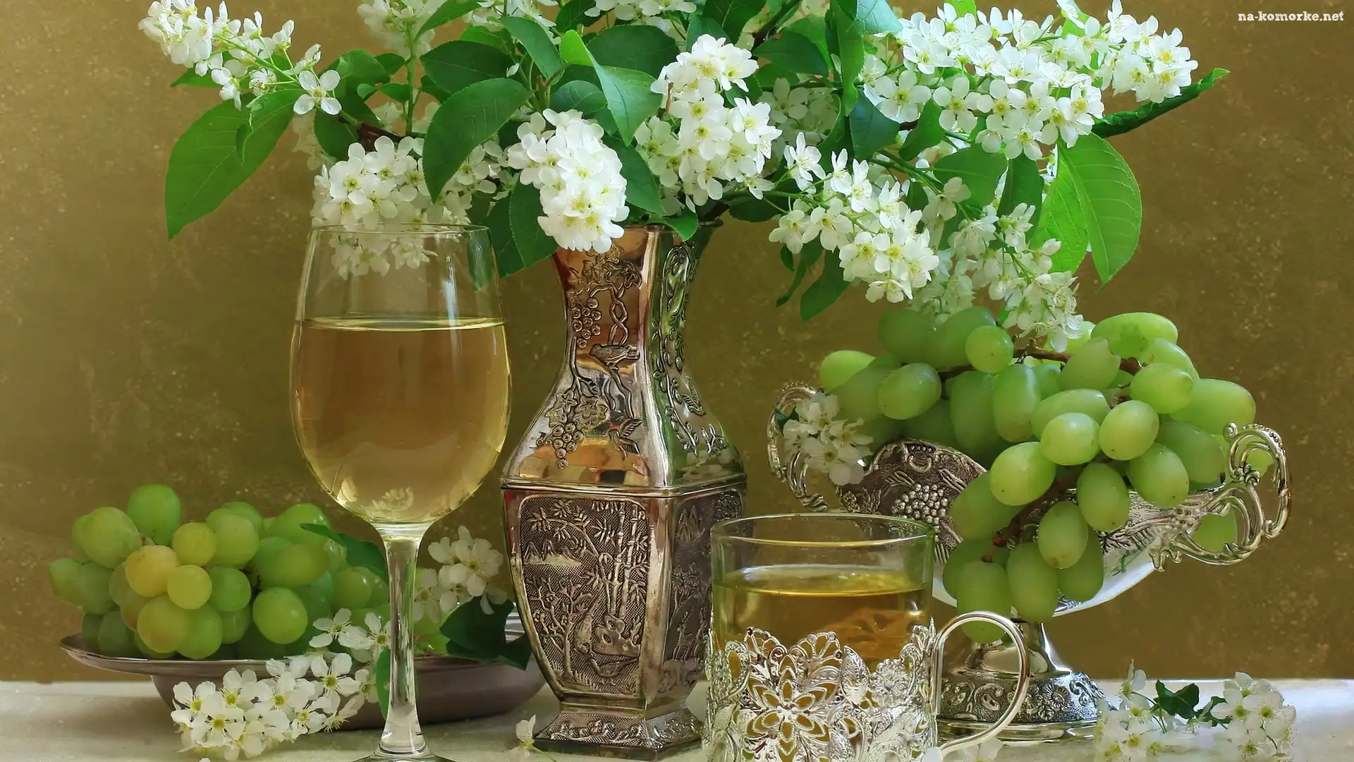 Wino, Srebrna, Jaśmin, Winogrona, Zastawa, Herbata na Komórkę