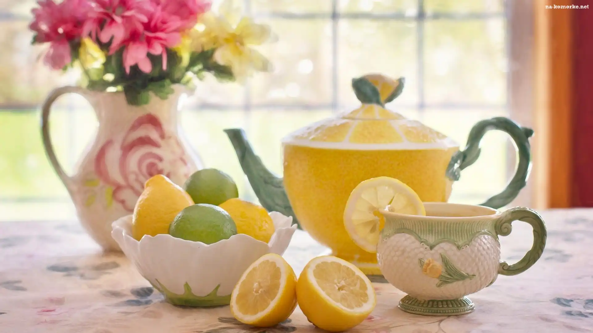 Herbata, Imbryk, Kompozycja, Cytryny, Filiżanka, Limonki na Komórkę