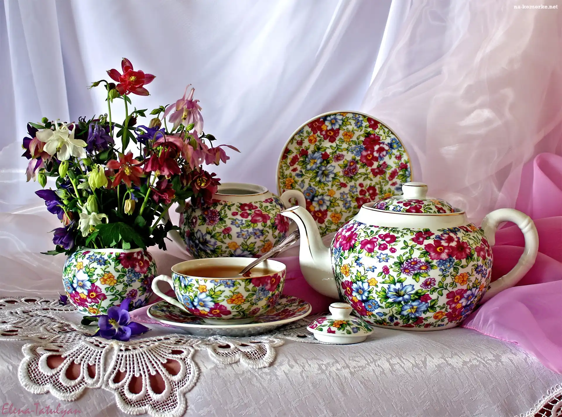 Zastawa, Herbata, Kwiaty na Komórkę