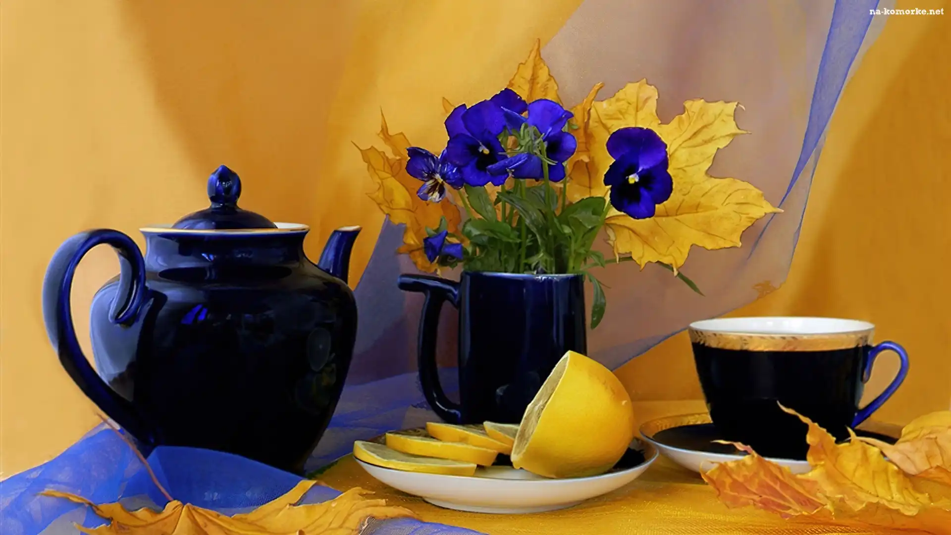 Herbatka, Cytrynka, Czajniczek, Bratki na Komórkę
