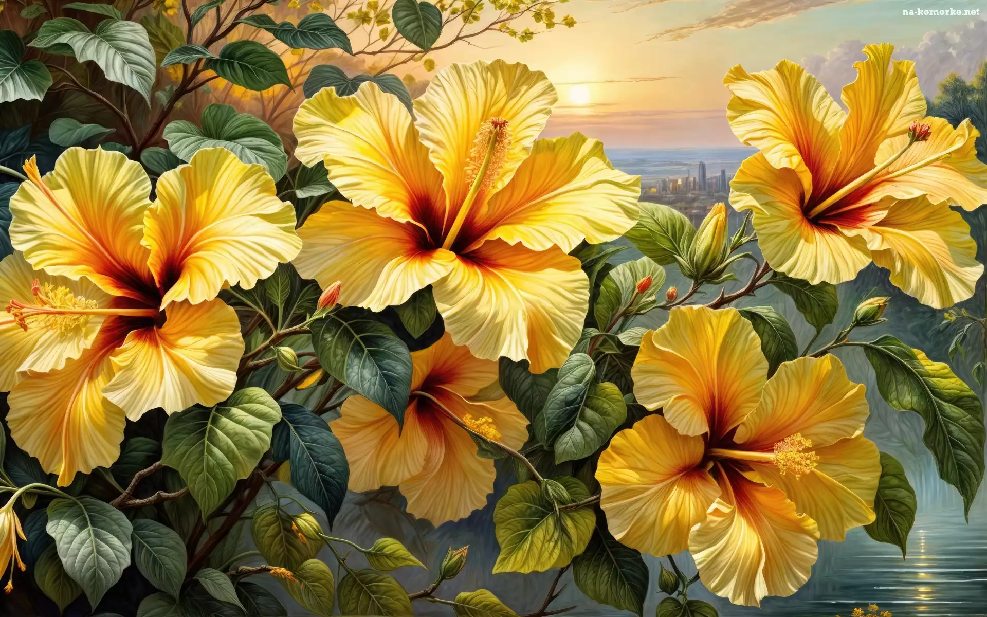 Liście, Grafika, Kwiaty, Hibiskusy na Komórkę