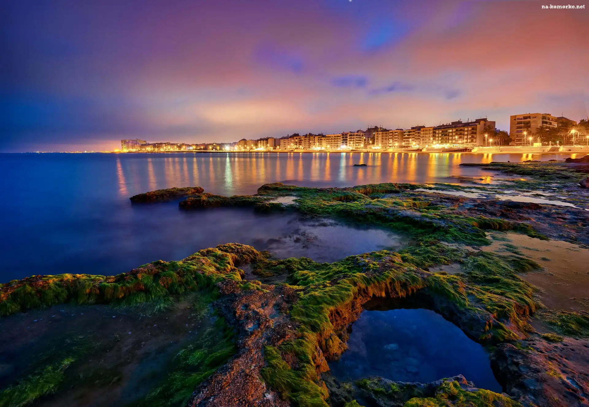 Hiszpania, Wybrzeże, Miasto, Noc na Komórkę