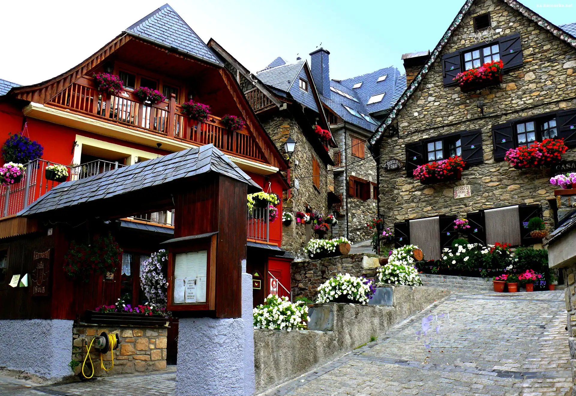 Hiszpania, Domy, Kwiaty, Uliczka, Zaułek na Komórkę