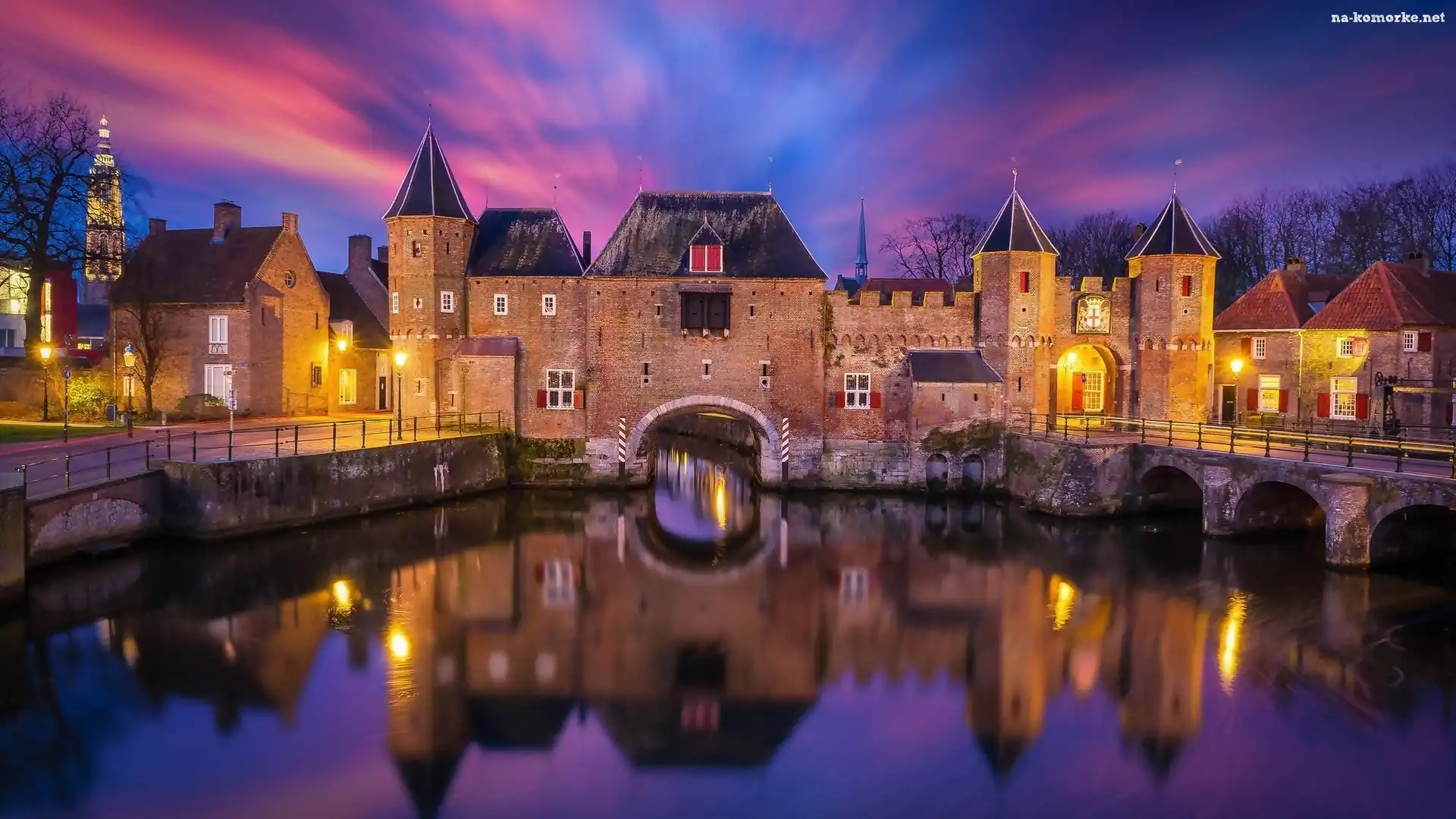 Holandia, Piękny, Zamek, Fosa, Noc na Komórkę
