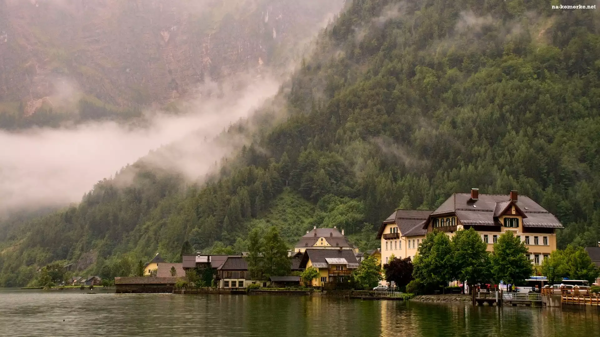 Hotele, Jezioro, Las, Mgła, Domy na Komórkę