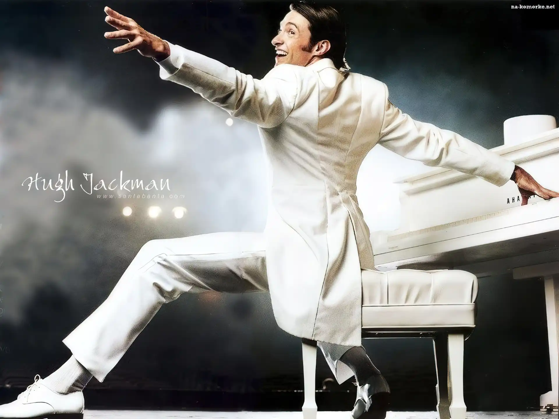 Hugh Jackman, biały strój, fortepian na Komórkę