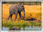 Idący, Trawa, Słoń na Komórkę