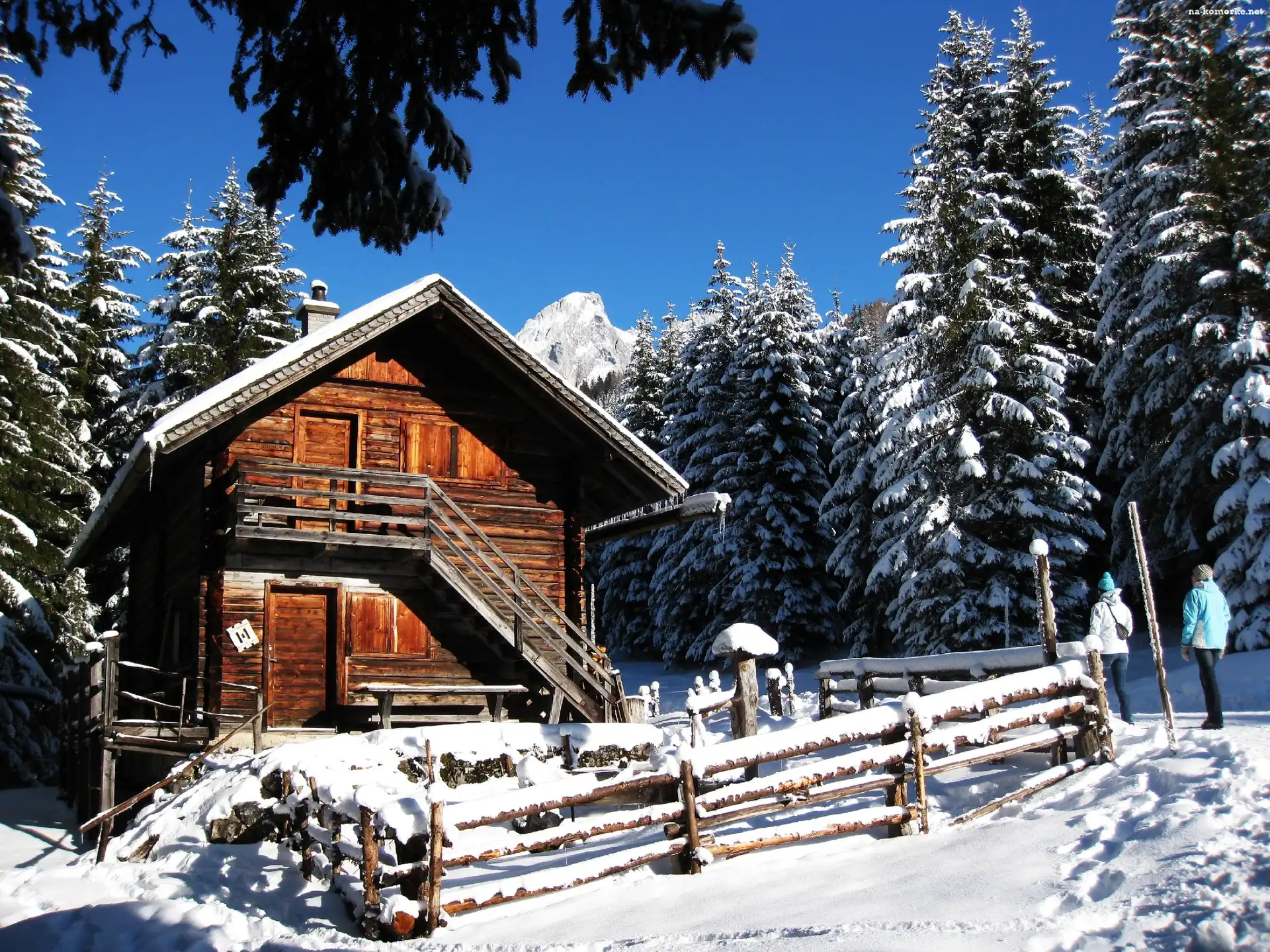 Iglaki, Zima, Drewniany, Dom, Ośnieżone na Komórkę