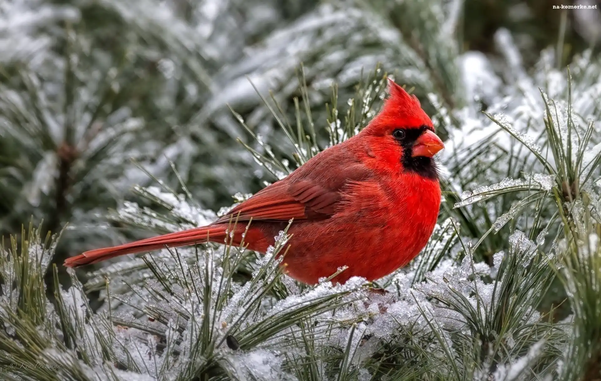 Iglaki, Ptak, Kardynał, Ośnieżone, Gałązki na Komórkę
