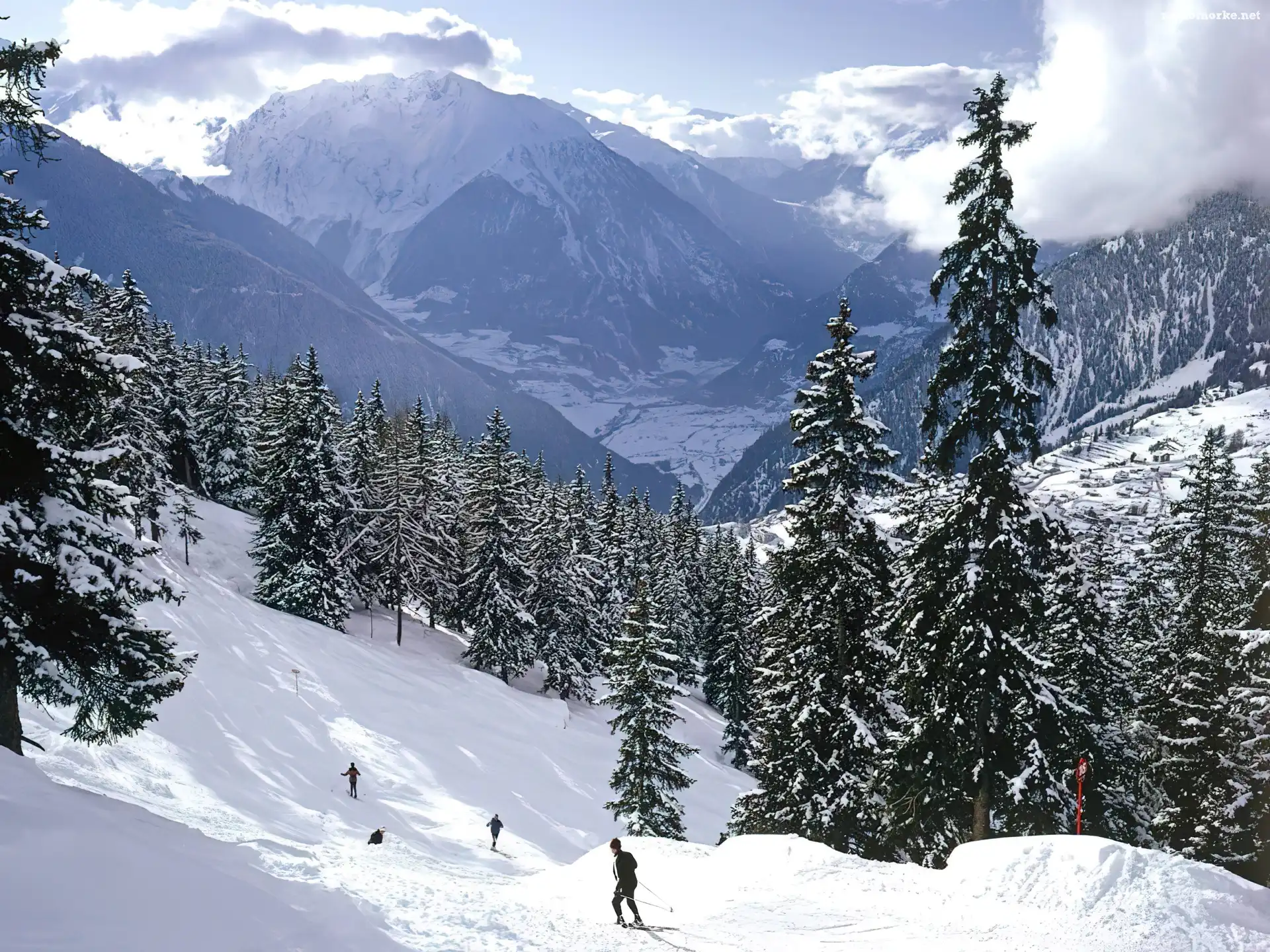 Iglaki, Górski, Stok, Narciarze, Ośnieżone, Zima na Komórkę