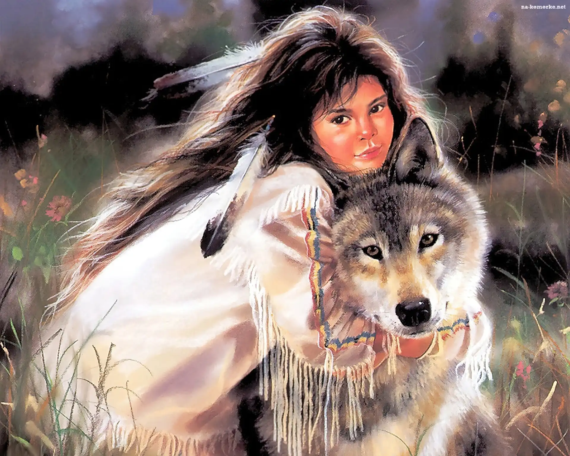 Dziewczynka, Indianka, Wilk na Komórkę