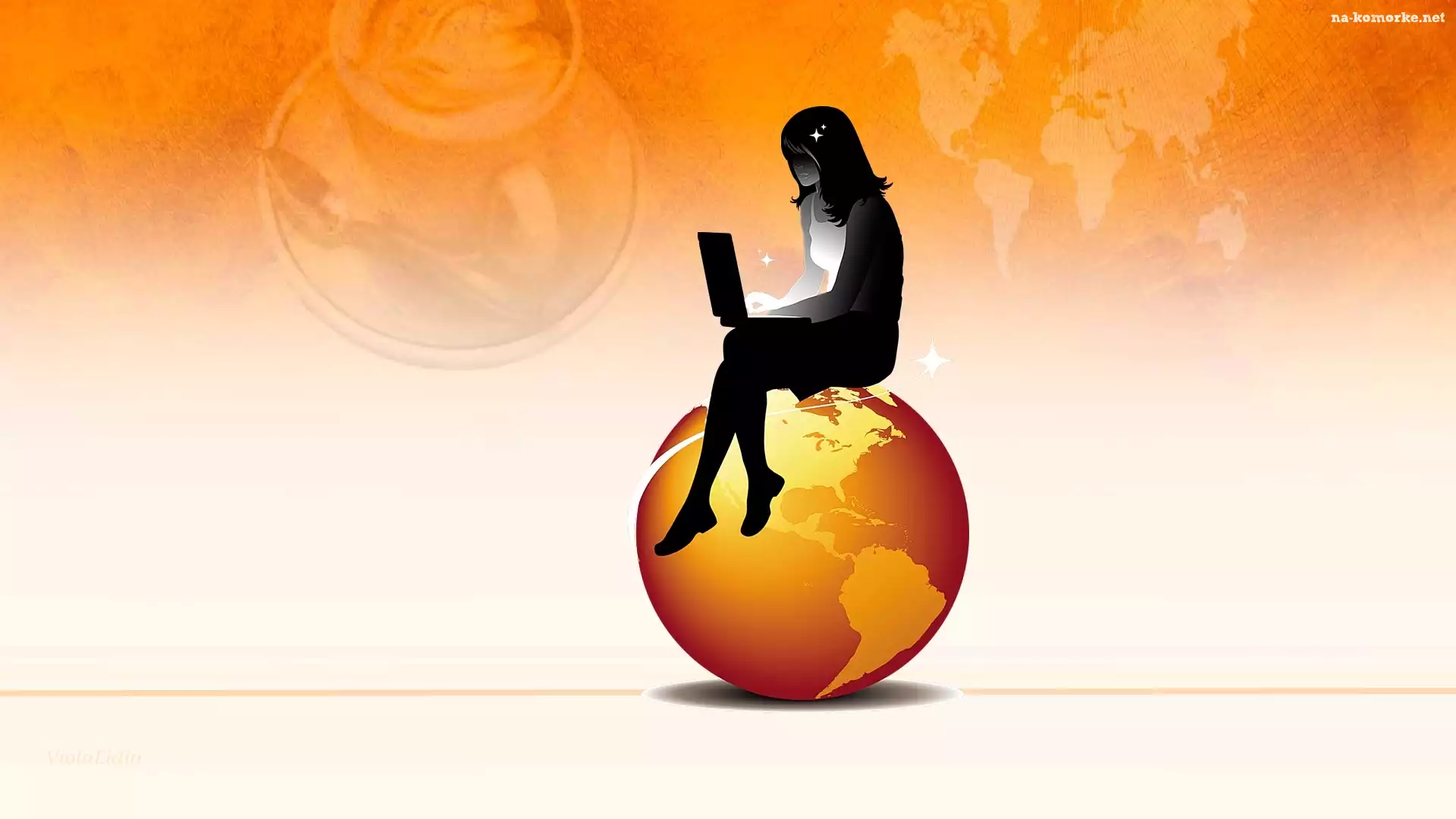 Internet, Planeta, Grafika, Laptop, Ziemia, Dziewczyna na Komórkę