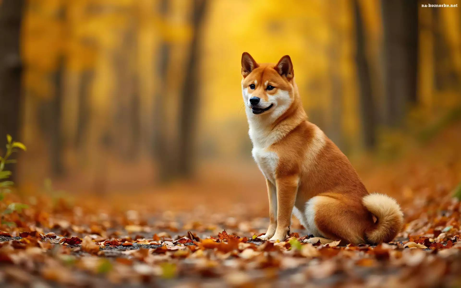 Pożółkłe, Pies, Shiba inu, Liście, Grafika AI na Komórkę