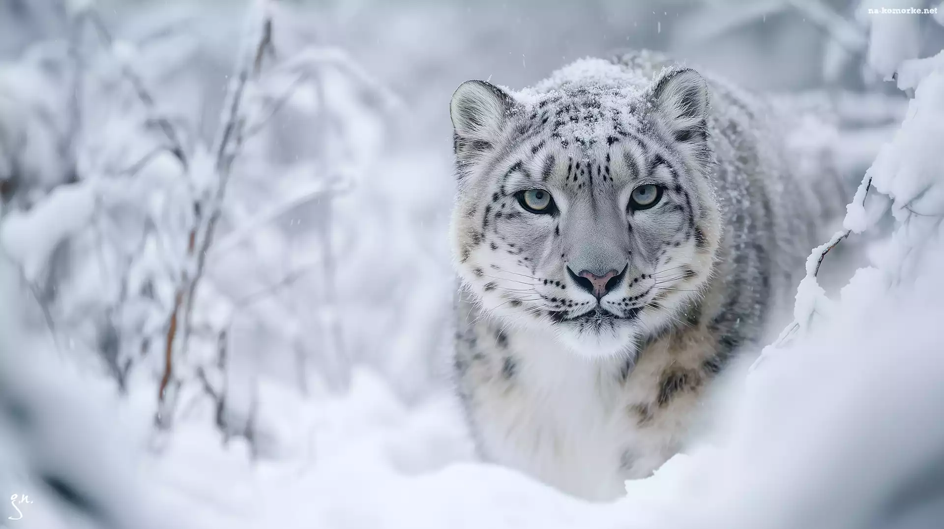 Śnieg, Grafika AI, Irbis śnieżny, Zima na Komórkę