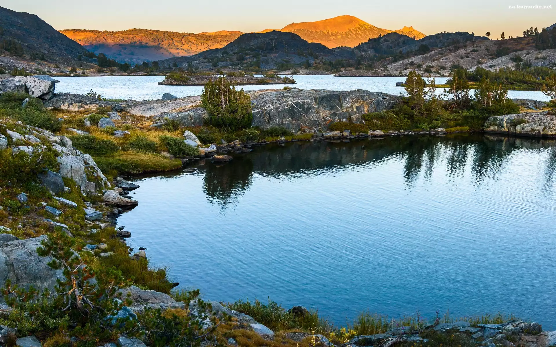 Ansel Adams Wilderness, Skały, Stany Zjednoczone, Thousand Island Lake, Jezioro, Sierra Nevada, Góry, Drzewa, Kalifornia na Komórkę |