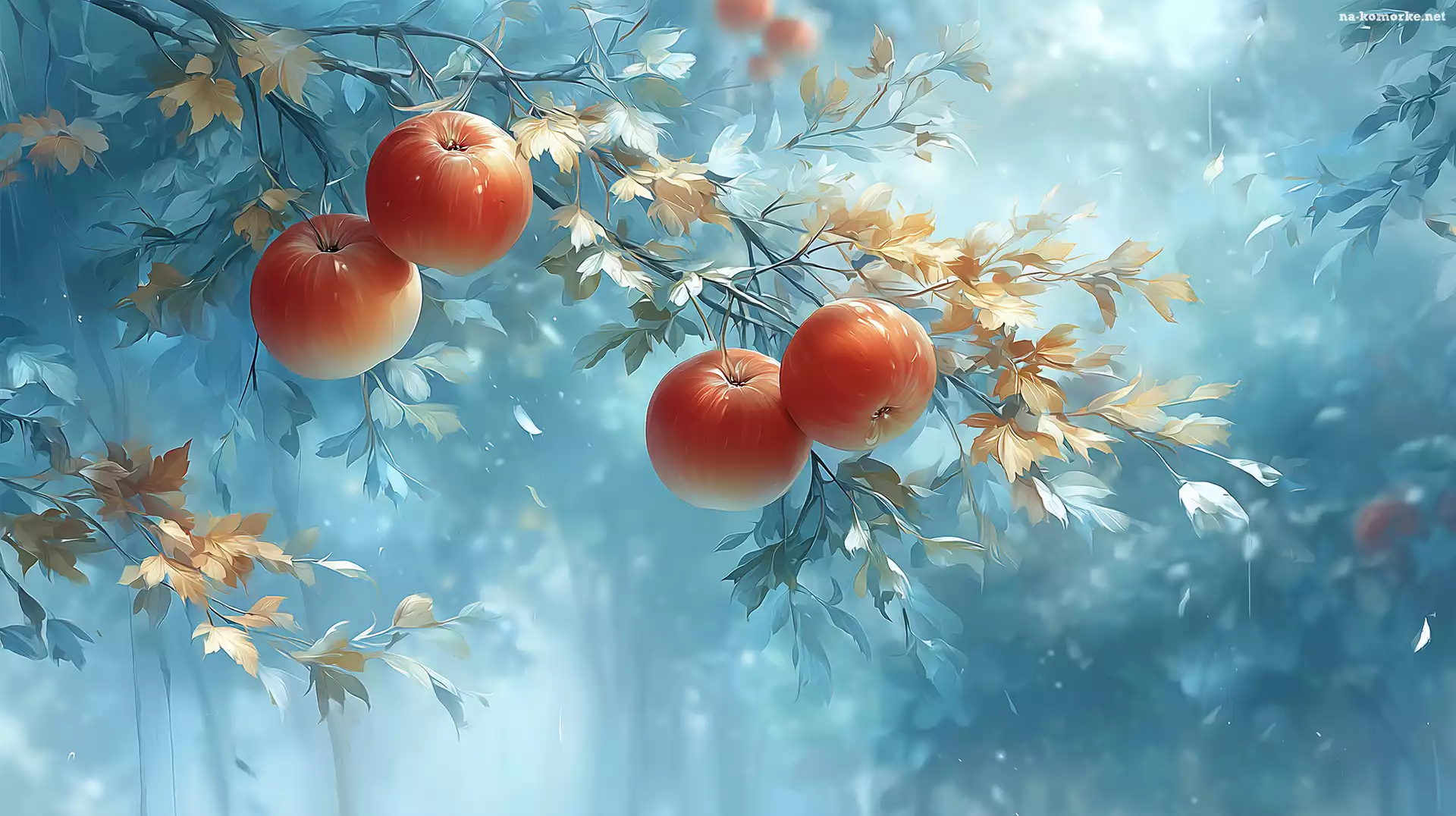Cztery, Jesienne, Liście, Jabłka, Grafika AI na Komórkę