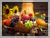 Jabłka, Jesienne, Owoce, Koszyk, Dynia, Winogrona na Komórkę