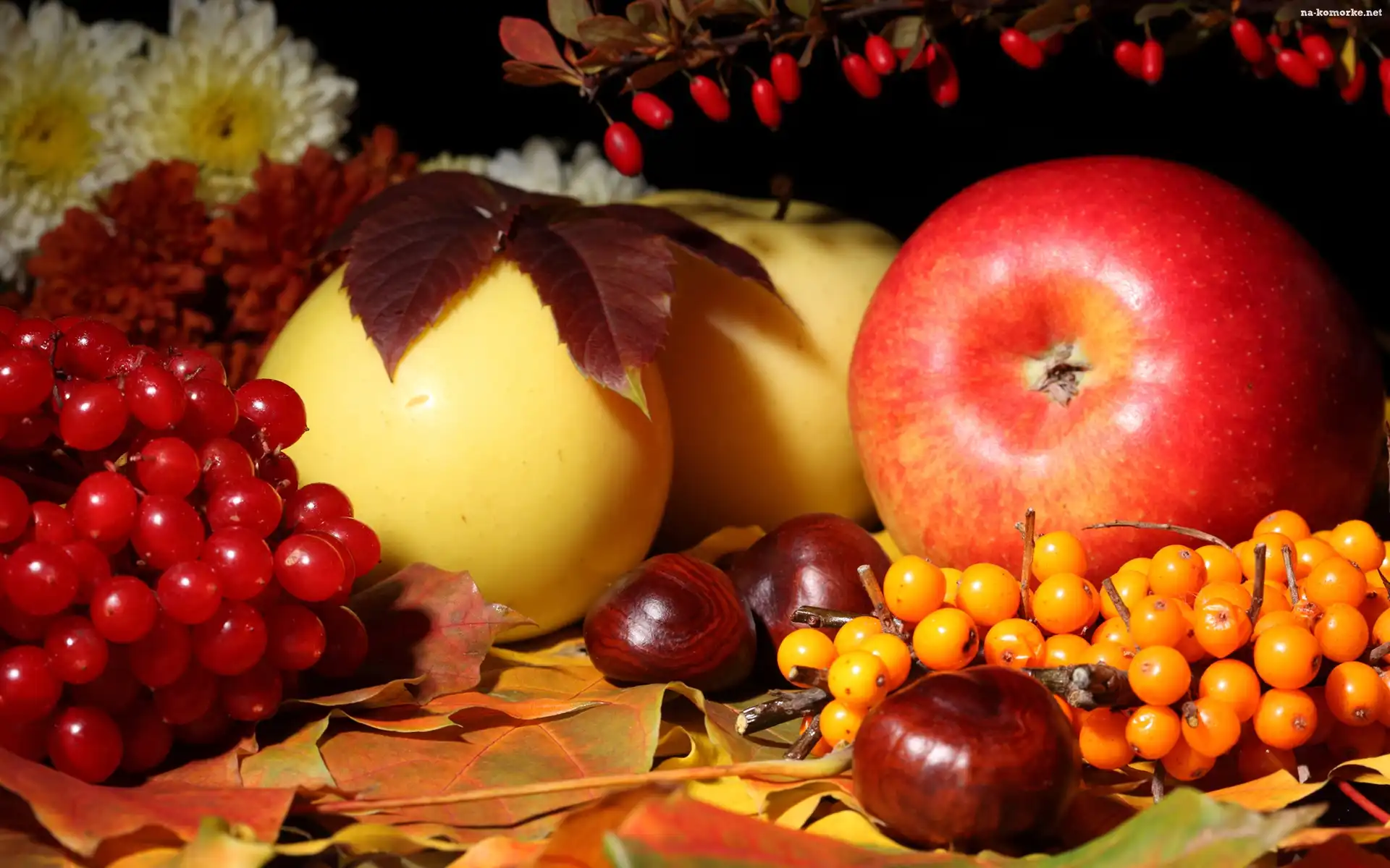 Jabłka, Kompozycja, Kasztany, Liście na Komórkę