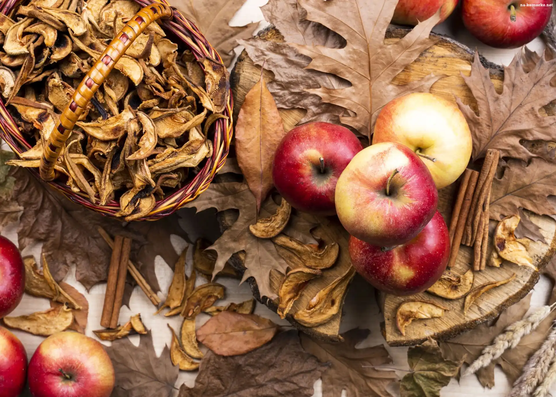 Jabłka, Suche, Liście, Koszyk, Suszone na Komórkę