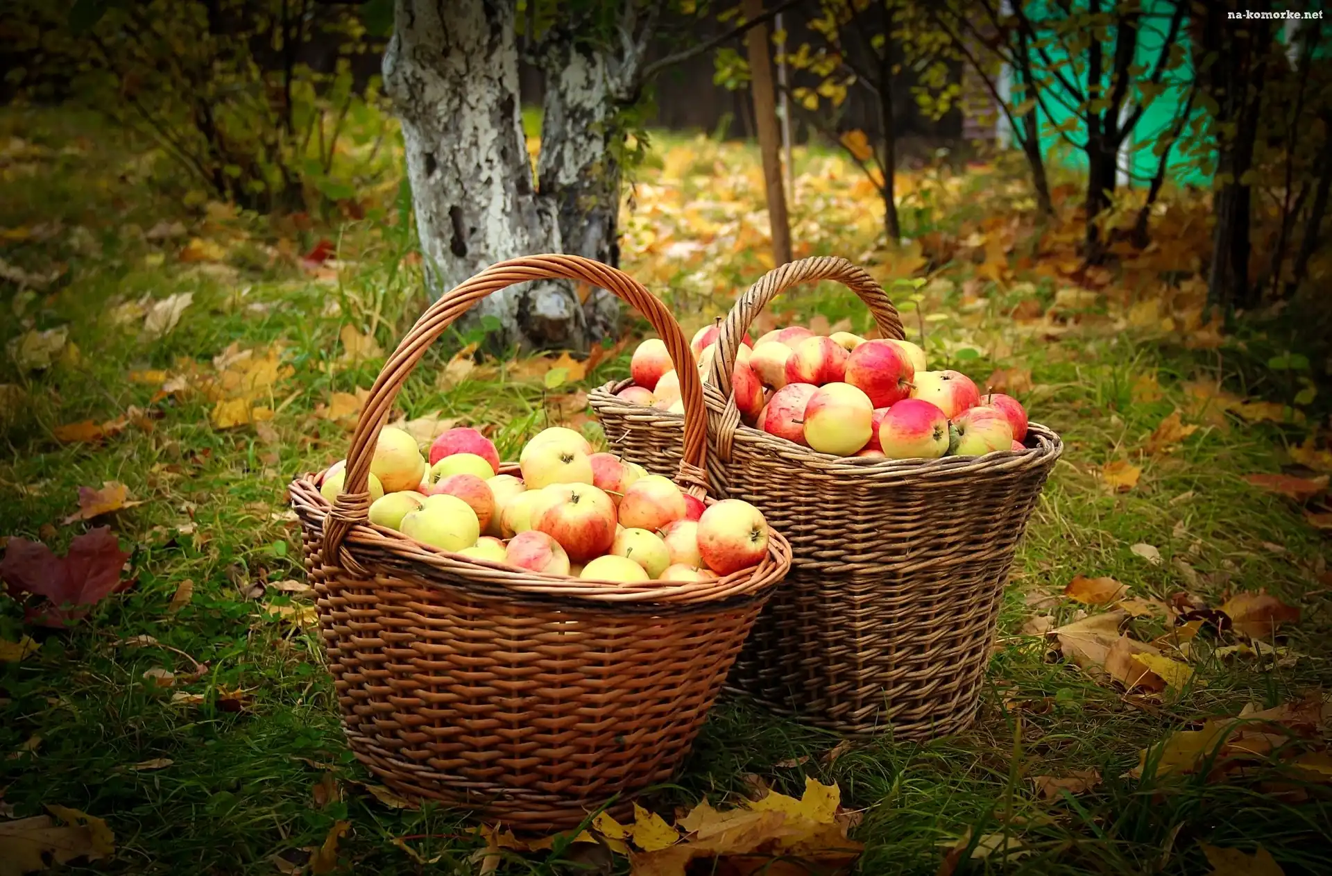 Jabłka, Jesień, Drzewa, Liście, Kosze na Komórkę