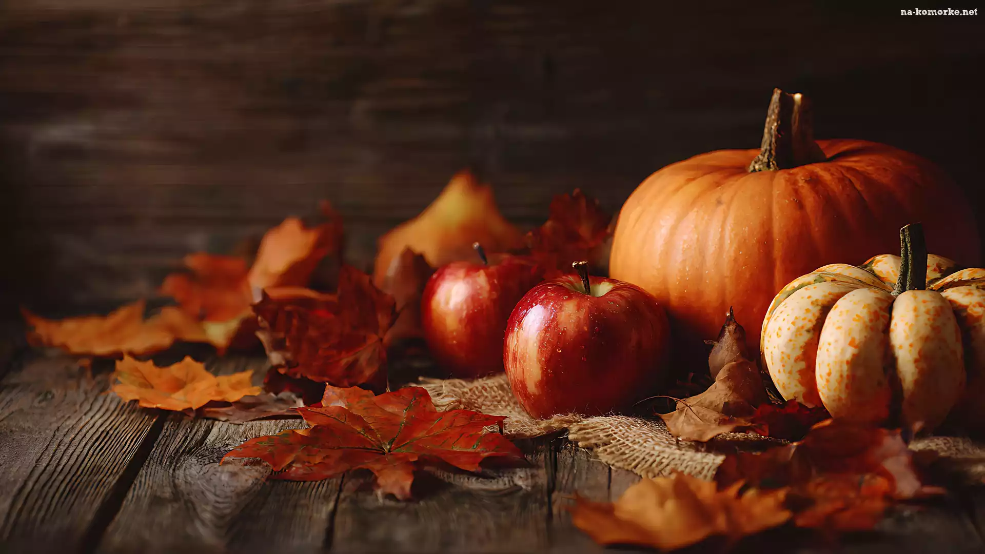 Liście, Deski, Dynie, Jabłka na Komórkę