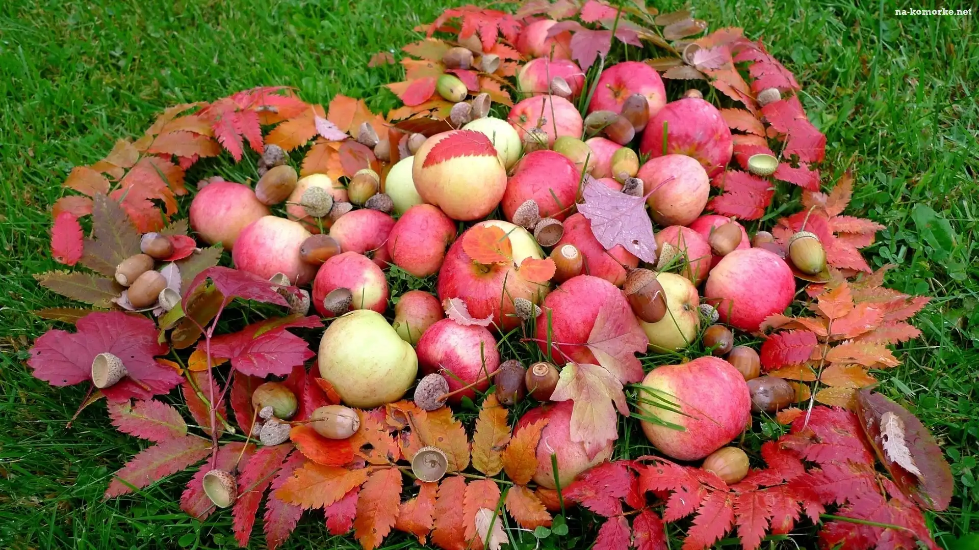 Jabłka, Trawa, Liście, Żołędzie na Komórkę