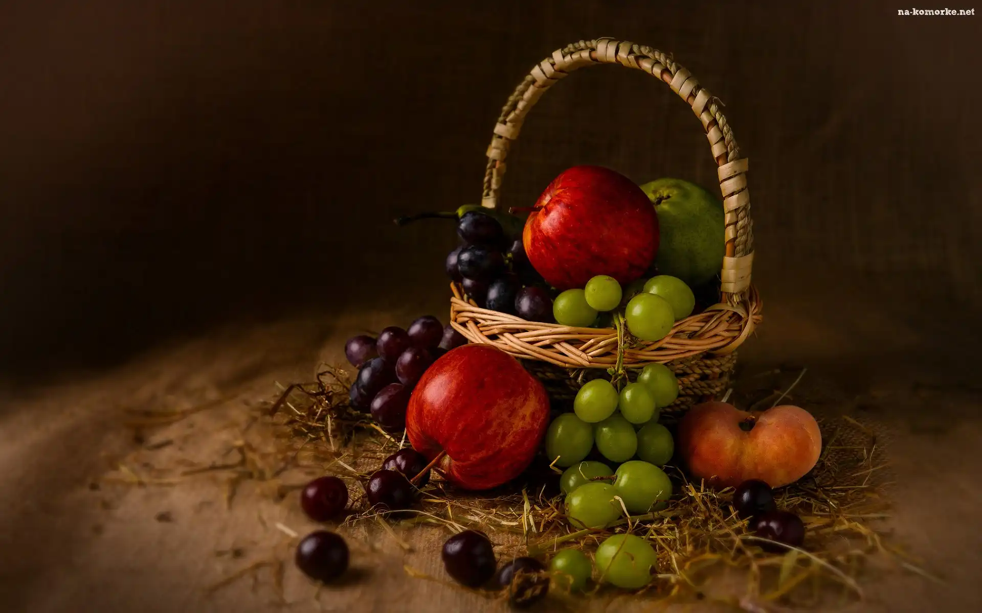 Jabłka, Owoce, Koszyk, Gruszka, Winogrona, Brzoskwinia na Komórkę